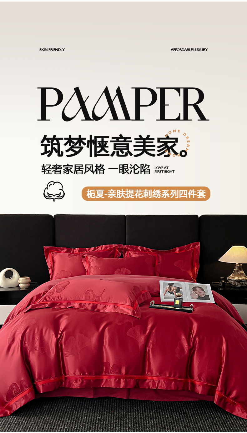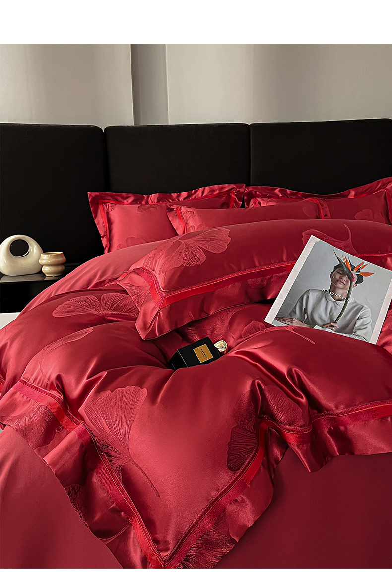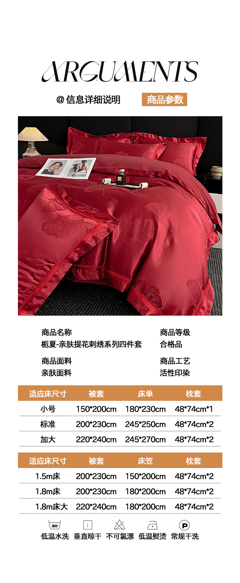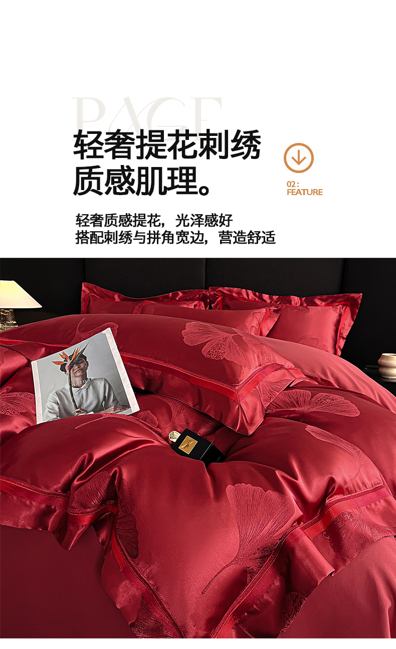 当前位置: 91家纺网 > 商品网购 > 床品套件 > 四件套 > 其它四件套 > 置顶家纺 2026新款栀夏银杏叶亲肤提花刺绣四件套 栀夏-酒红