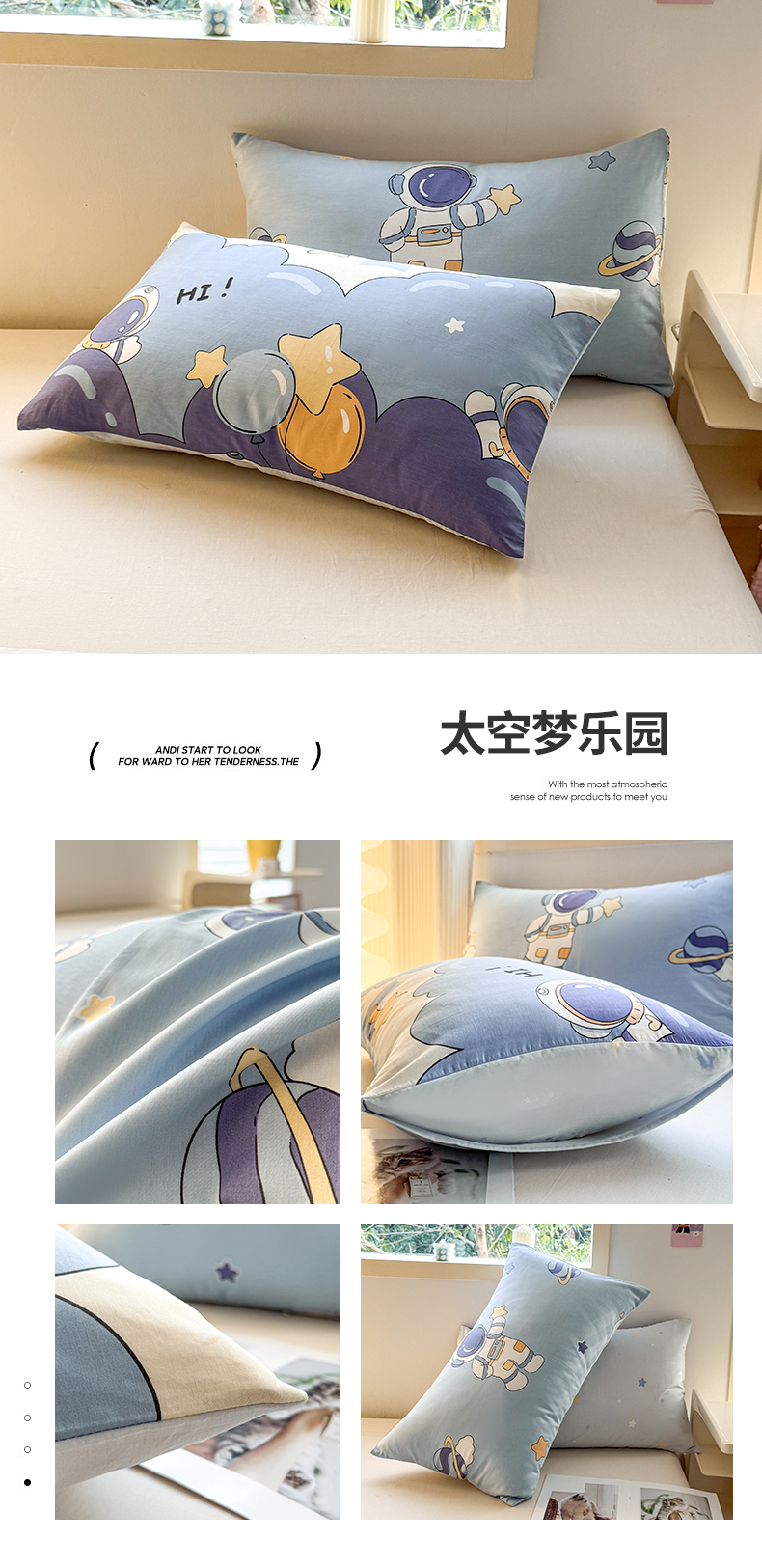 商品名称:小蓝孩家纺 2026新款12868全棉单人信封枕套(联系商家可打折,尺寸可定制) 太空梦乐园