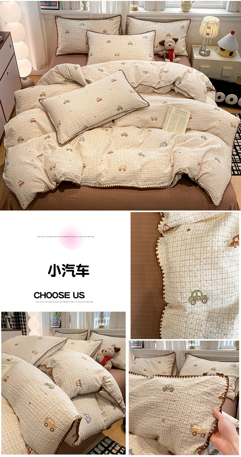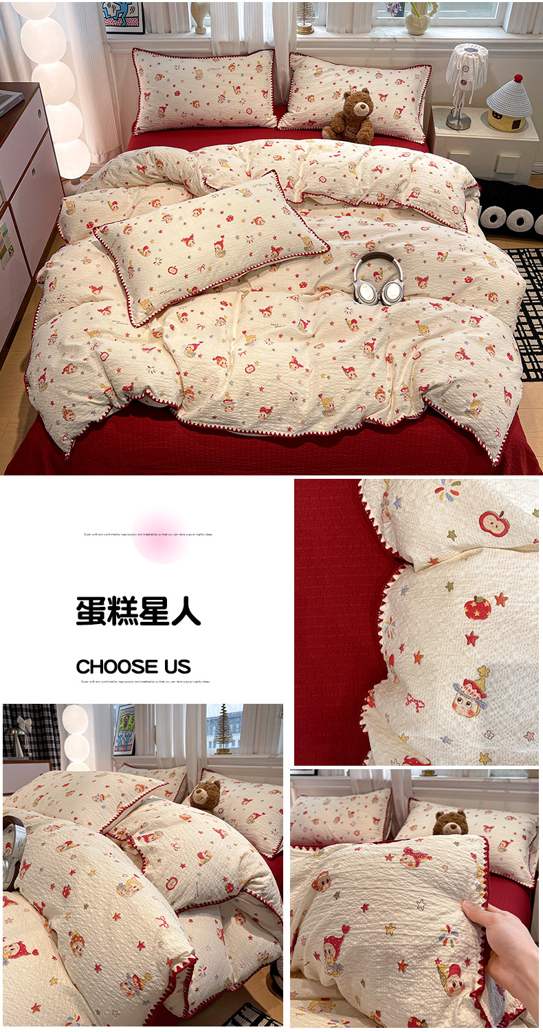 (总)仟网汇 2026新款云感泡芙棉小清新印花贝壳边四件套,豹纹凯蒂,蛋糕星人,费尔岛小狗,哈喽星人,黑白蝴蝶,萌趣小马,萌趣小熊,青涩樱桃,诗意柔,小汽车,摇摇星人,樱桃波点