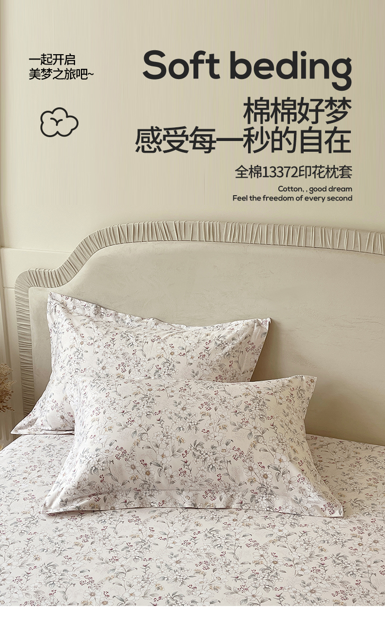 (总)宝齐莱家纺 2026新款全棉纯棉13372印花单枕套枕套单件,浮光花影,花解语,洛可可,美如画,浅茉,清雅,午后花园,香榭丽,小确幸,烟花间,云间月,左岸晨雾
