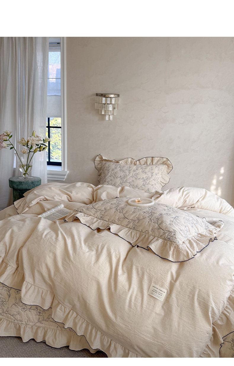(总)琳可家居 2026新款60S长绒棉花边床盖A类双面全棉高温水洗-蝶恋系列,蝶恋-暖白,蝶恋-卡其,蝶恋-雾粉,组合