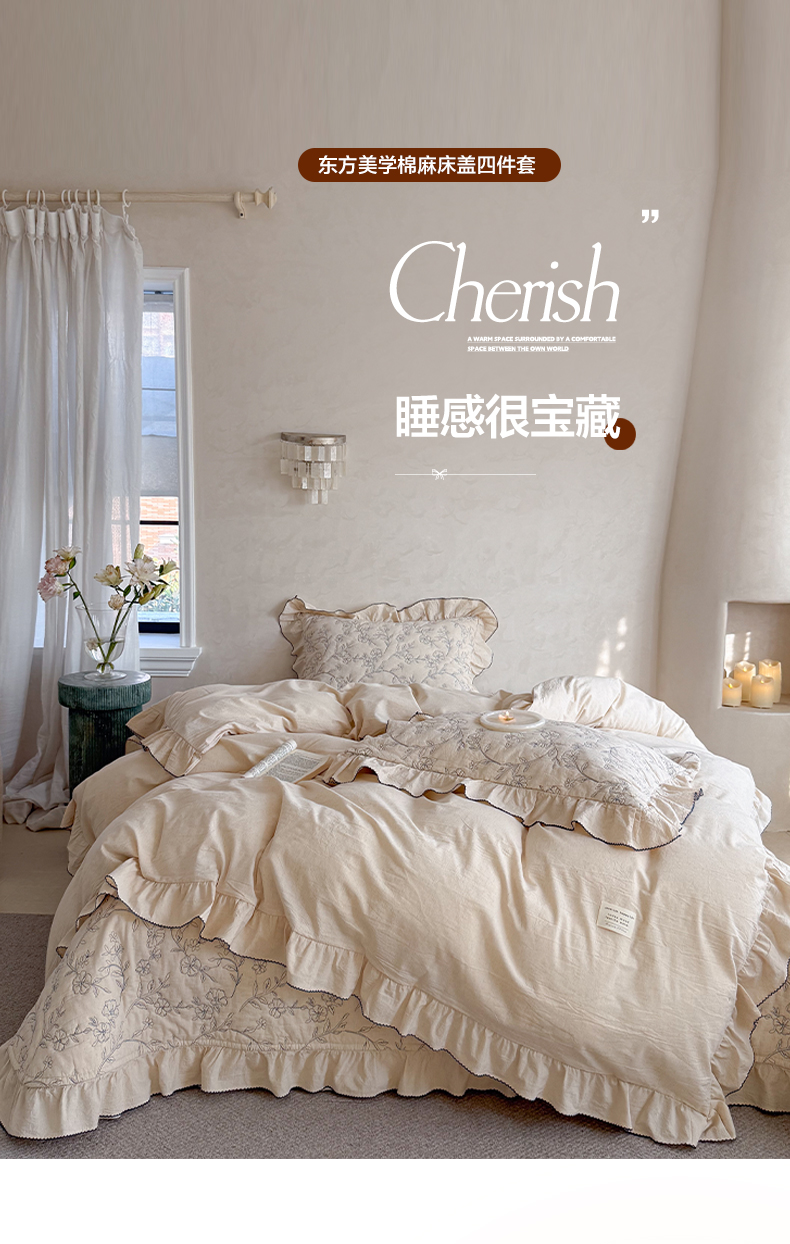 (总)琳可家居 2026新款东方美学棉麻床盖三件套四件套可搭配被套