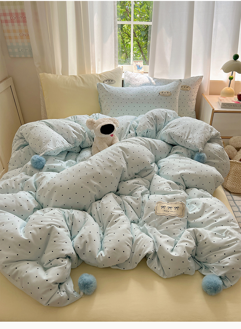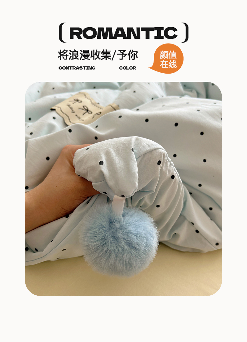 当前位置: 91家纺网 > 商品网购 > 床品套件 > 四件套 > 夏被四件套 > 桃心家居 2026新款A类ins云柔水洗棉织标混搭蝴蝶结毛球少女奶呼呼仙气四件套 水洗棉毛球-蝴蝶结薄荷布丁