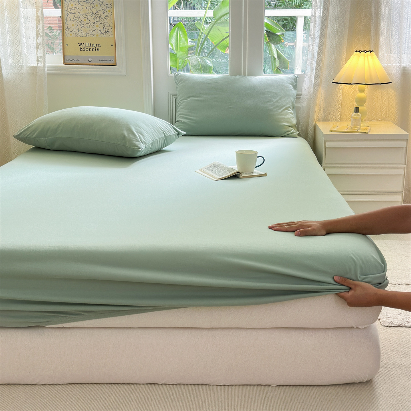 舒居家纺 2026新款全棉针织棉床笠 果绿
