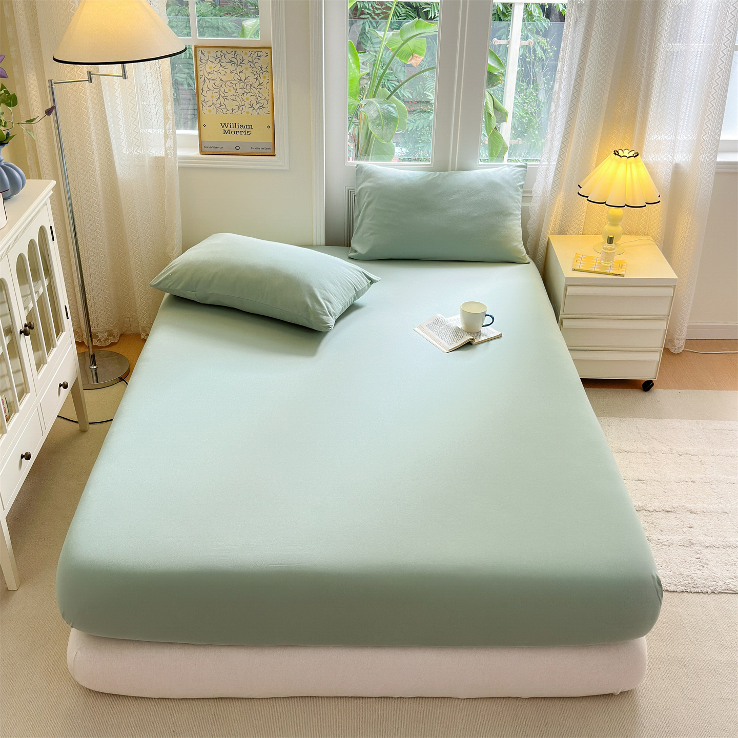 商品名称:舒居家纺 2026新款全棉针织棉床笠 果绿