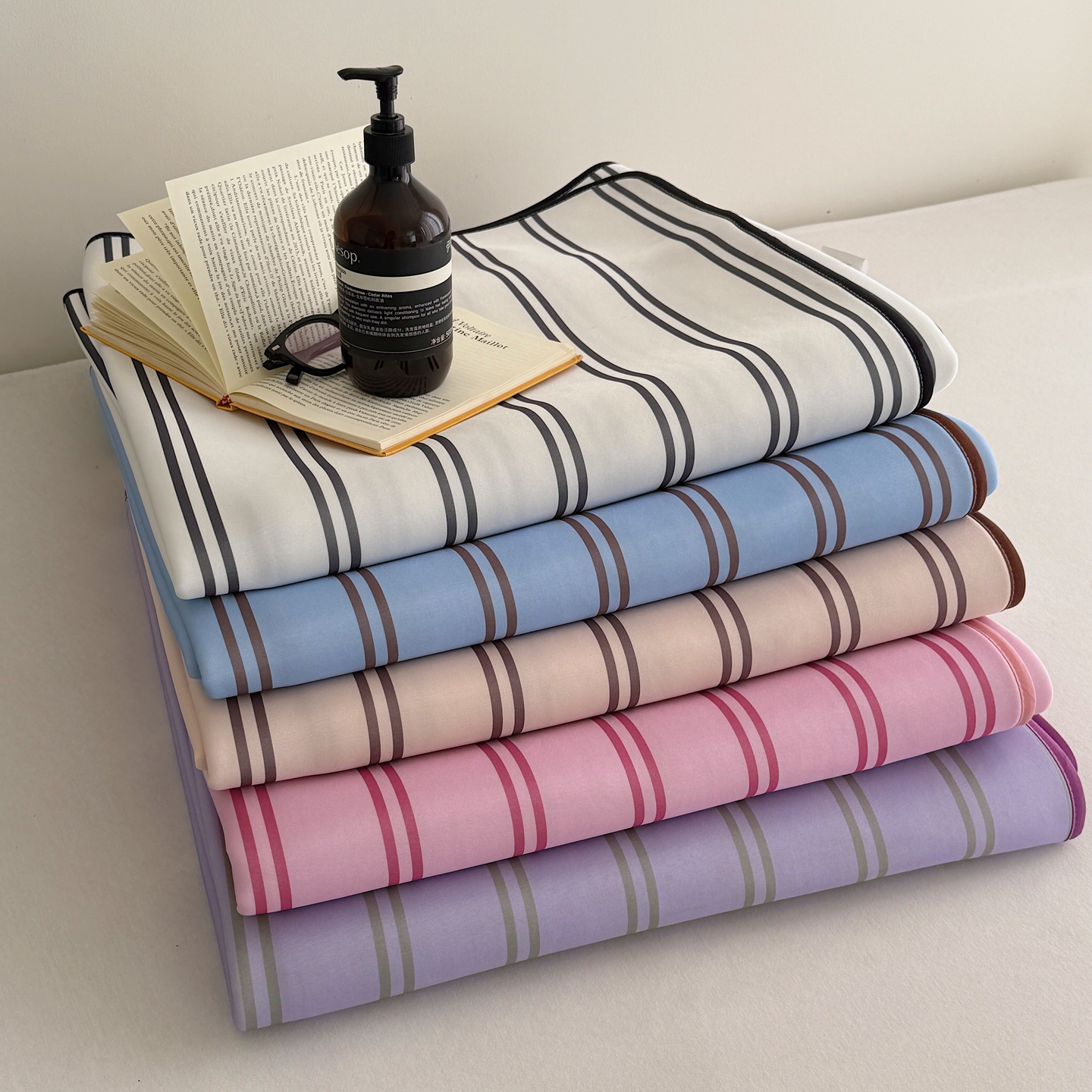 (总)美乐迪家纺 2026春夏新款水光冰丝凉席席子-条纹系列