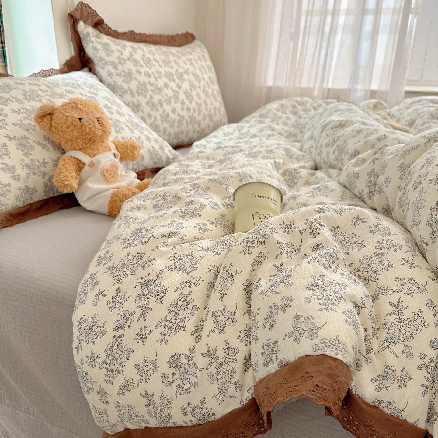 一比一家纺 2026新款彩色花边木棉皱皱纱四件套 阿吉豆