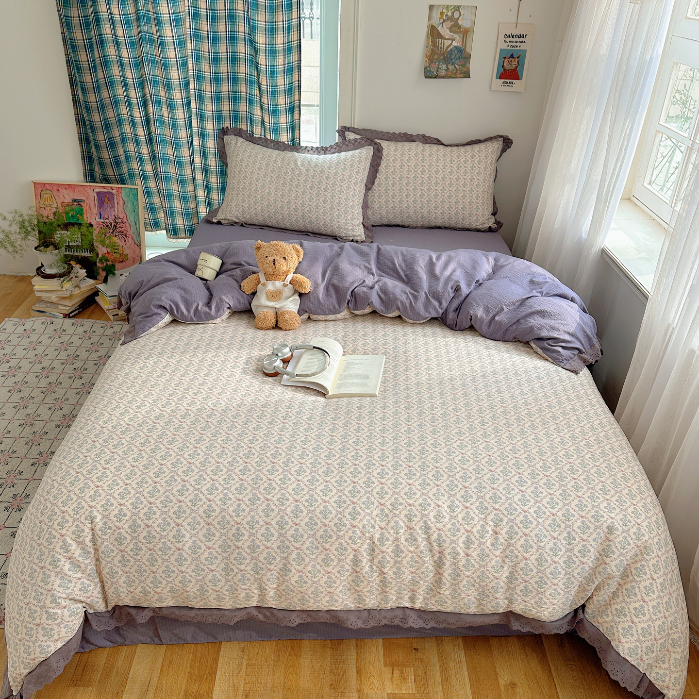 (总)一比一 2026新款云感皱皱双层纱四件套-全棉花边款【控价99元销售】,半夏绿,百福蓝,薄荷微凉,春风里,春晓,豆蔻,蝴蝶梦,可颂,兰黛,山野栀子,素颜,太妃糖,心动,遇见,芝士奶酪,紫爱心,紫苏,花园兔,蜡笔画,小黑兔,白茶-绿,初恋,莱茵河畔,桃花诺