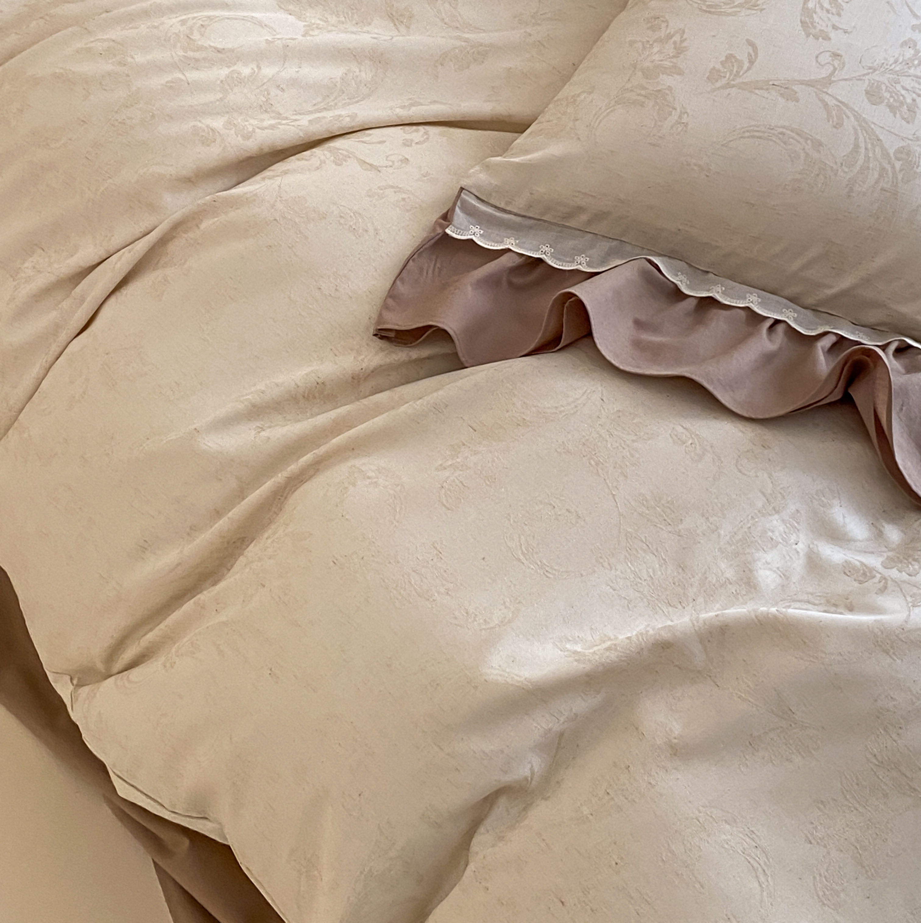 当前位置: 91家纺网 > 商品网购 > 床品套件 > 四件套 > 棉麻四件套 > 玉宇阁家居 2026新款色织棉麻大提花四件套-花边款 花边款-鸢梦
