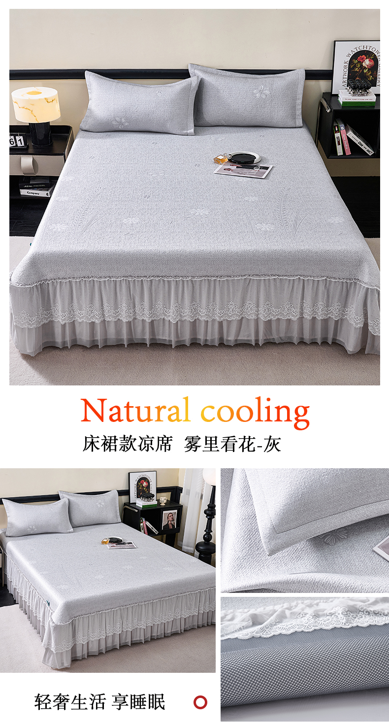 当前位置: 91家纺网 > 商品网购 > 床上用品 > 凉席 > 其他凉席 > 青雅席业 2026年新款A类提花工艺(提花双面)凉感豆豆席床裙款 床单款-雾里看花-灰
