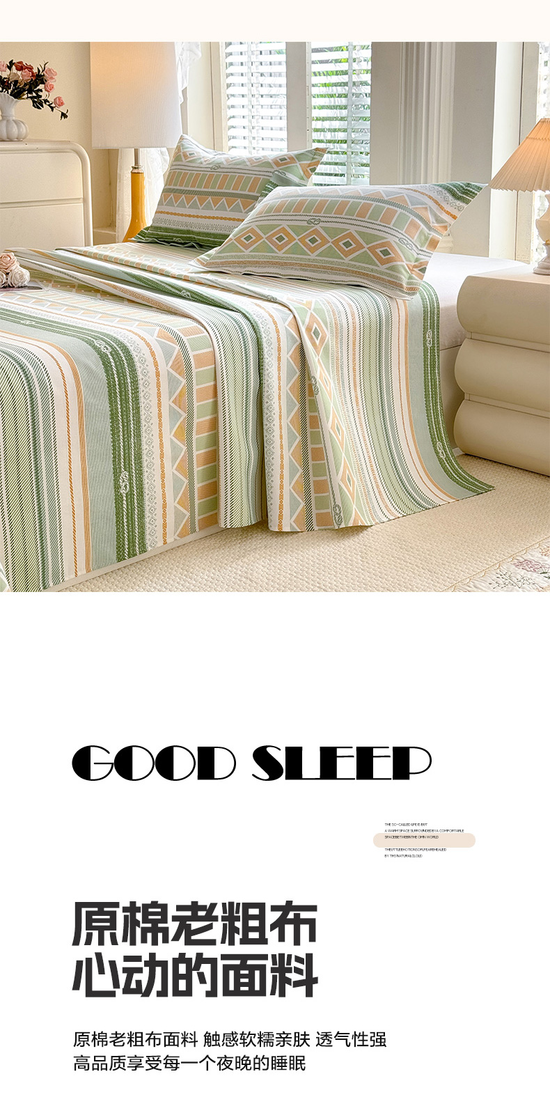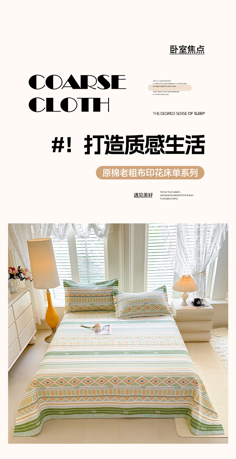 商品名称:(总)木易家居 2026新款原棉老粗布床单凉席三件套