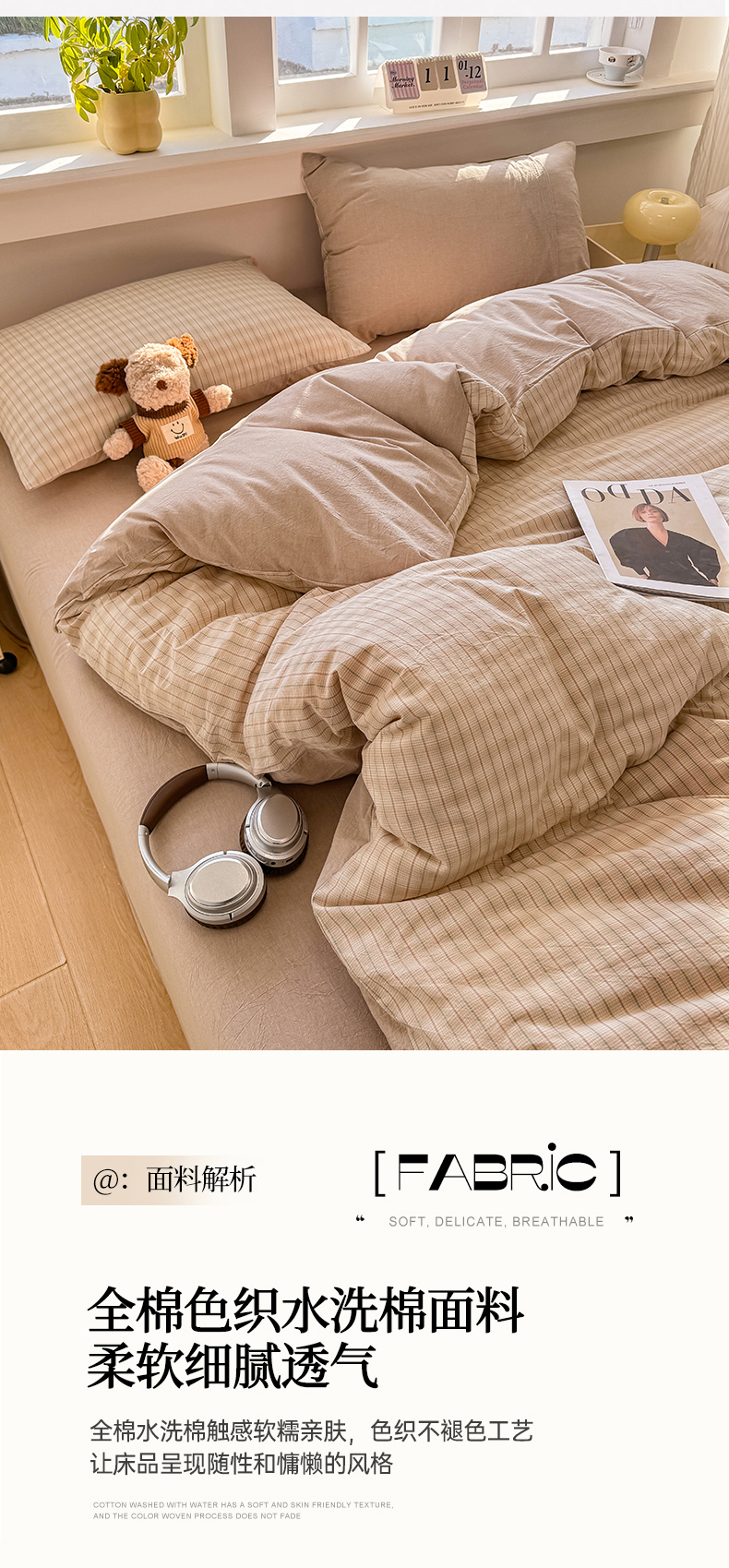 当前位置: 91家纺网 > 商品网购 > 床品套件 > 四件套 > 全棉普通四件套 > 梦依依 2026新款全棉色织水洗棉拉链款四件套 柠檬卡其