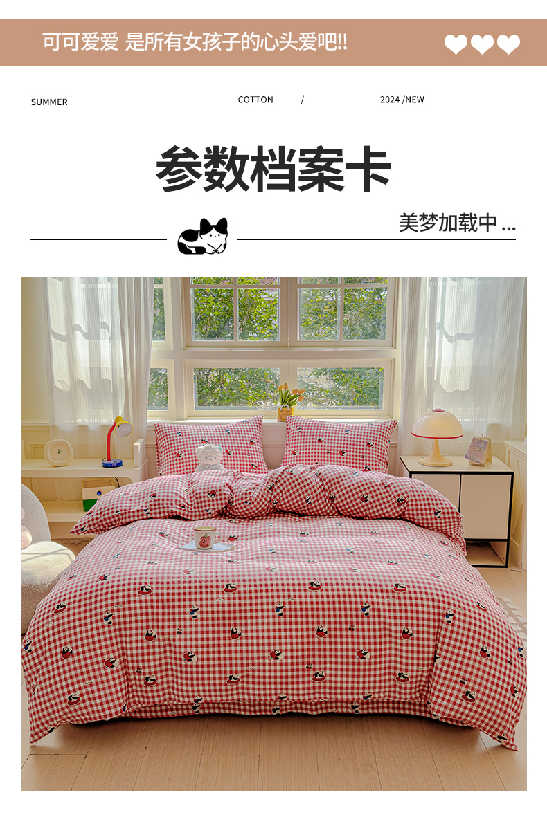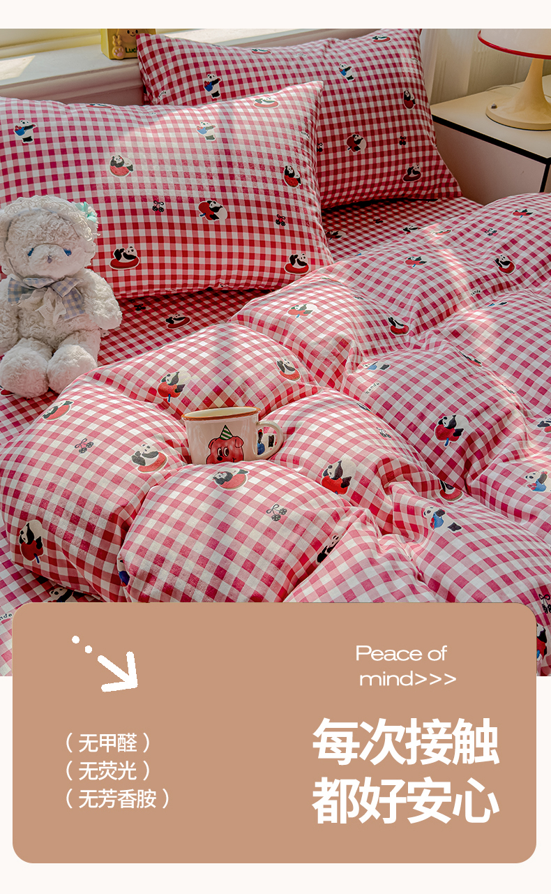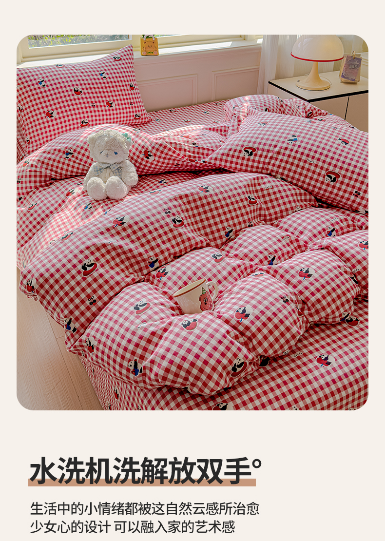 当前位置: 91家纺网 > 商品网购 > 床品套件 > 四件套 > 双层纱四件套 > 感遇家纺 2026春夏新款双层纱全棉纯棉系列四件套-第一批 红格熊猫