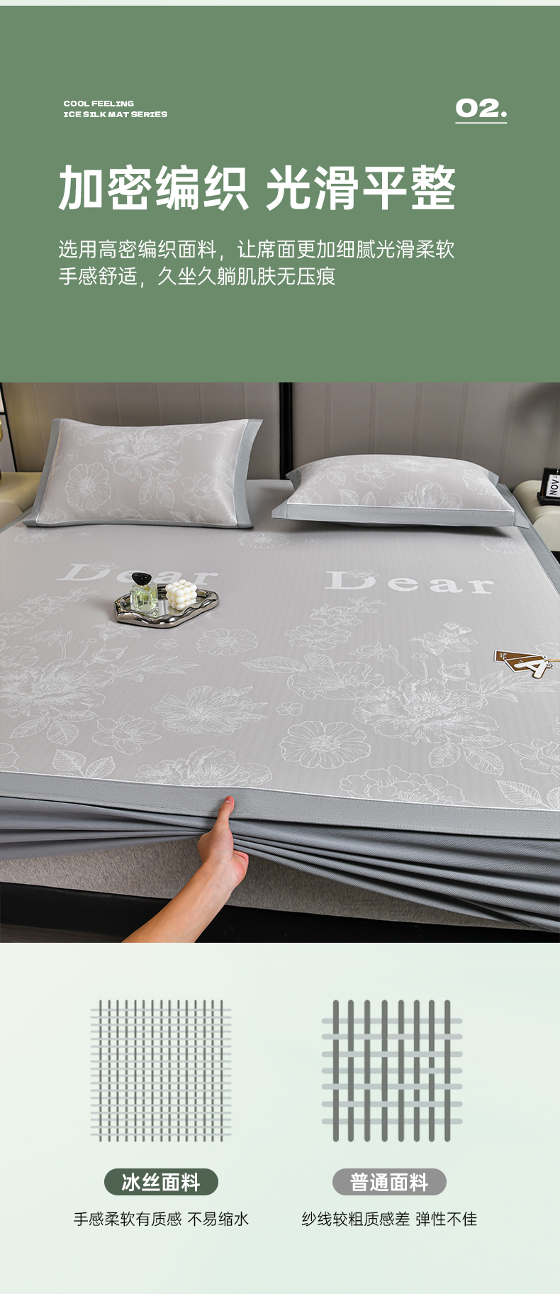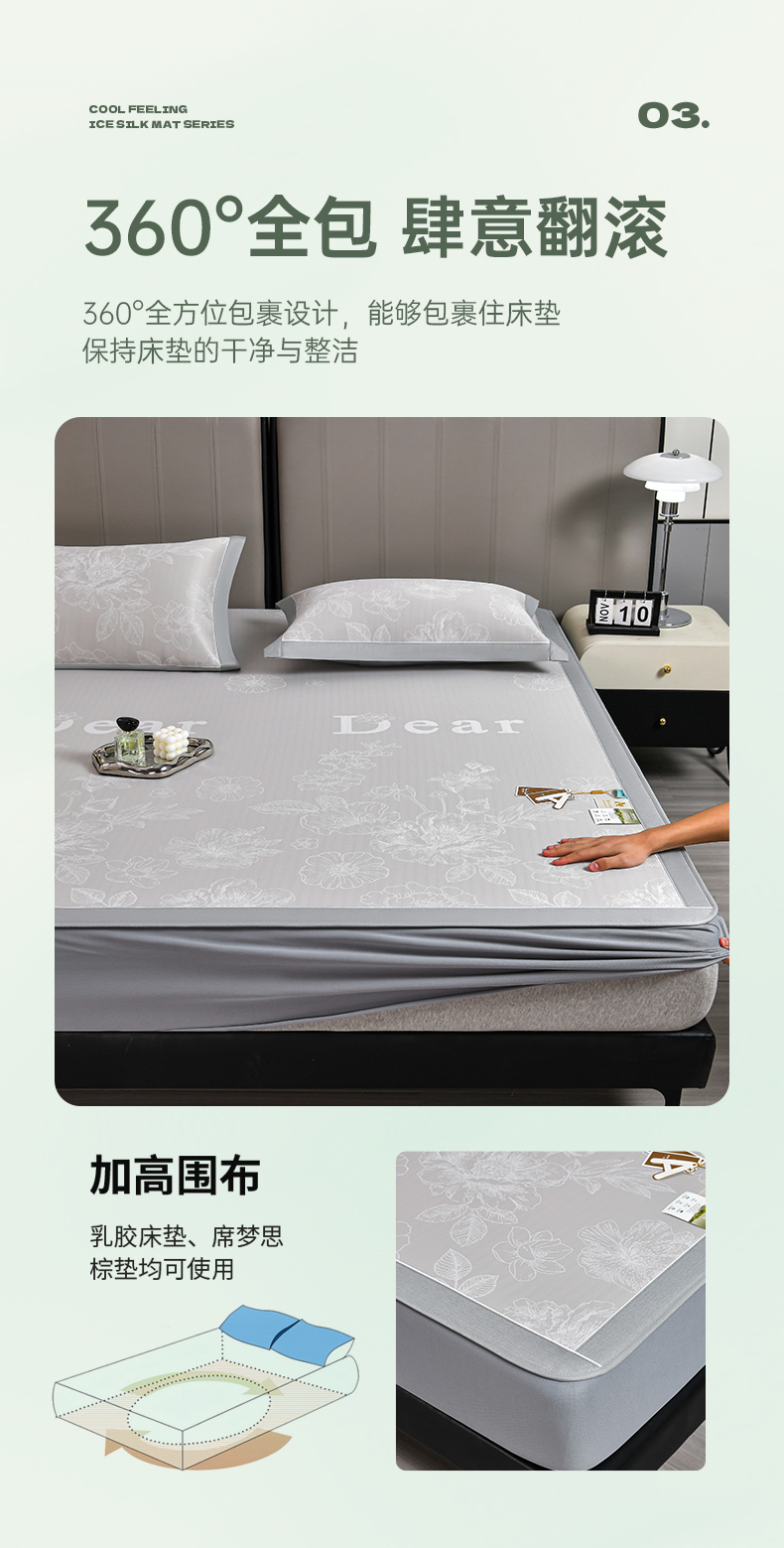 (总)小牛席业 2026春夏新款【实拍风格】PE凉感小碎花提花冰丝席凉席席子(床笠款),灰色,粉色,蓝色,抹茶,香槟