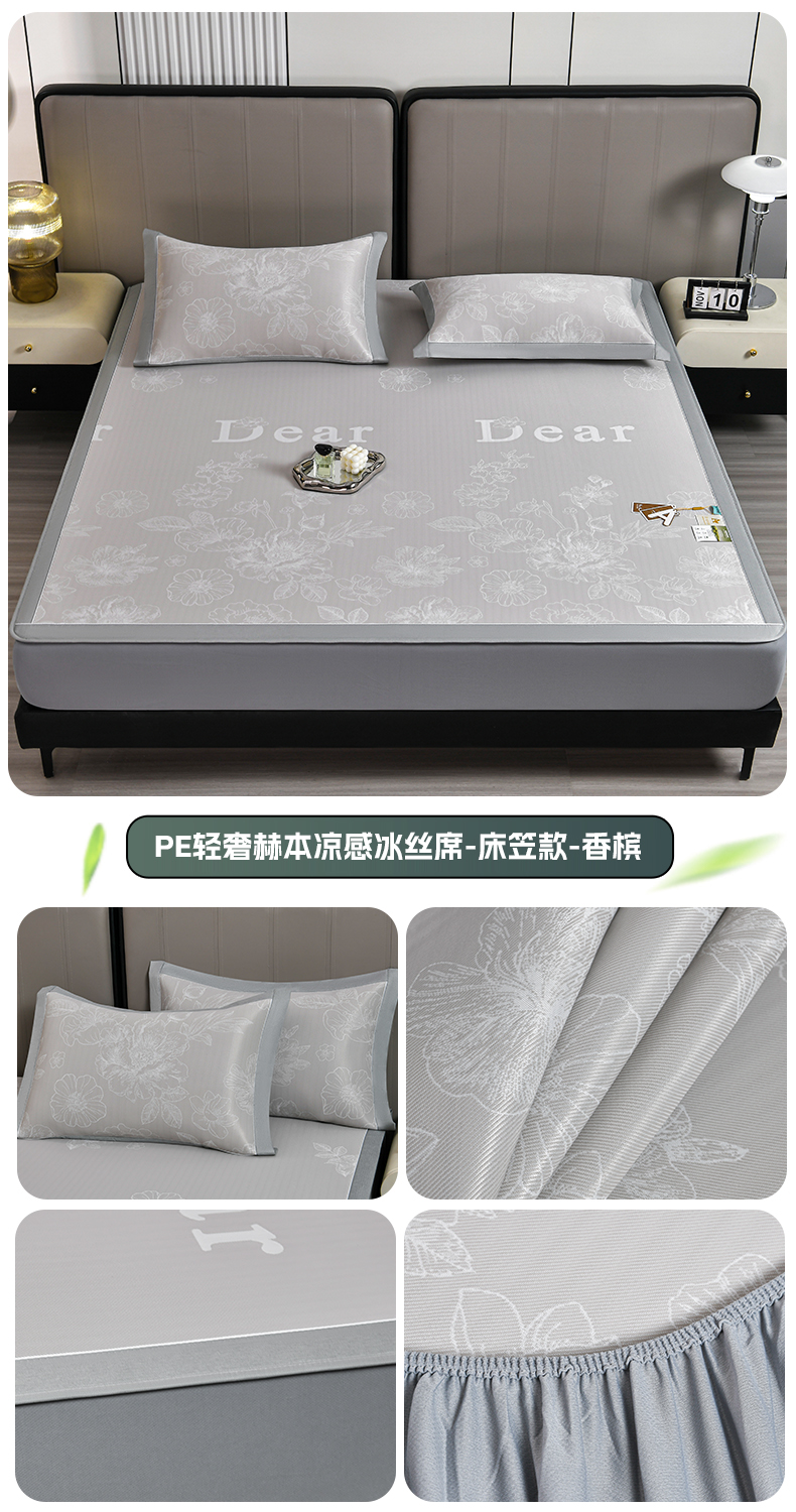(总)小牛席业 2026春夏新款【实拍风格】PE凉感凉席席子-轻奢赫本(床笠款),轻奢赫本-灰色,轻奢赫本-粉色,轻奢赫本-蓝色,轻奢赫本-香槟
