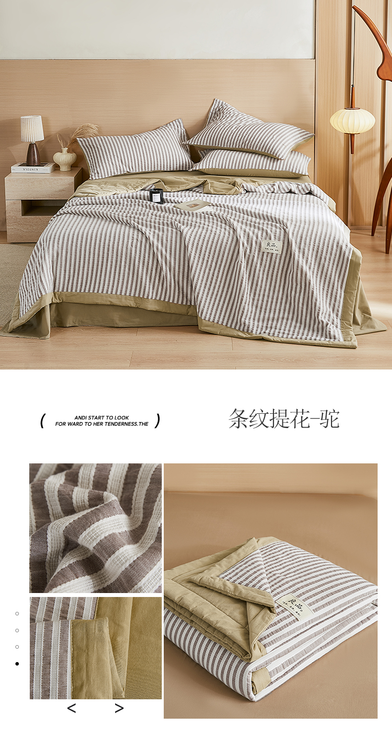 (总)鸣升家纺 2026新款A类全棉水洗棉条纹提花大豆纤维夏被四件套空调被,条纹提花粉,条纹提花灰,条纹提花蓝,条纹提花驼