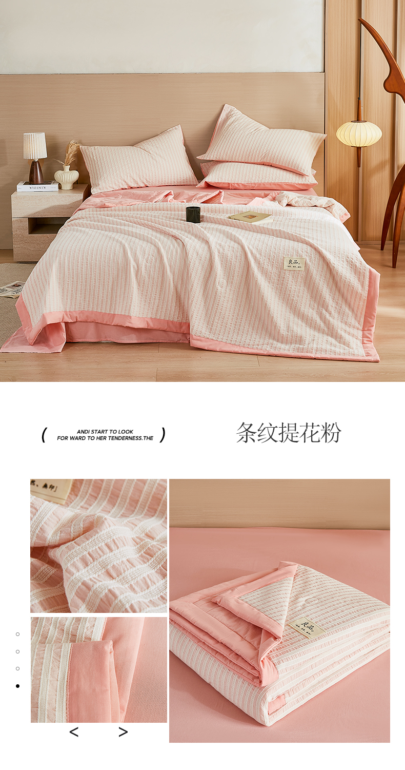 • 91家纺网 家纺一手货源 找家纺 (总)鸣升家纺 2026新款A类全棉水洗棉条纹提花大豆纤维夏被四件套空调被,条纹提花粉,条纹提花灰,条纹提花蓝,条纹提花驼