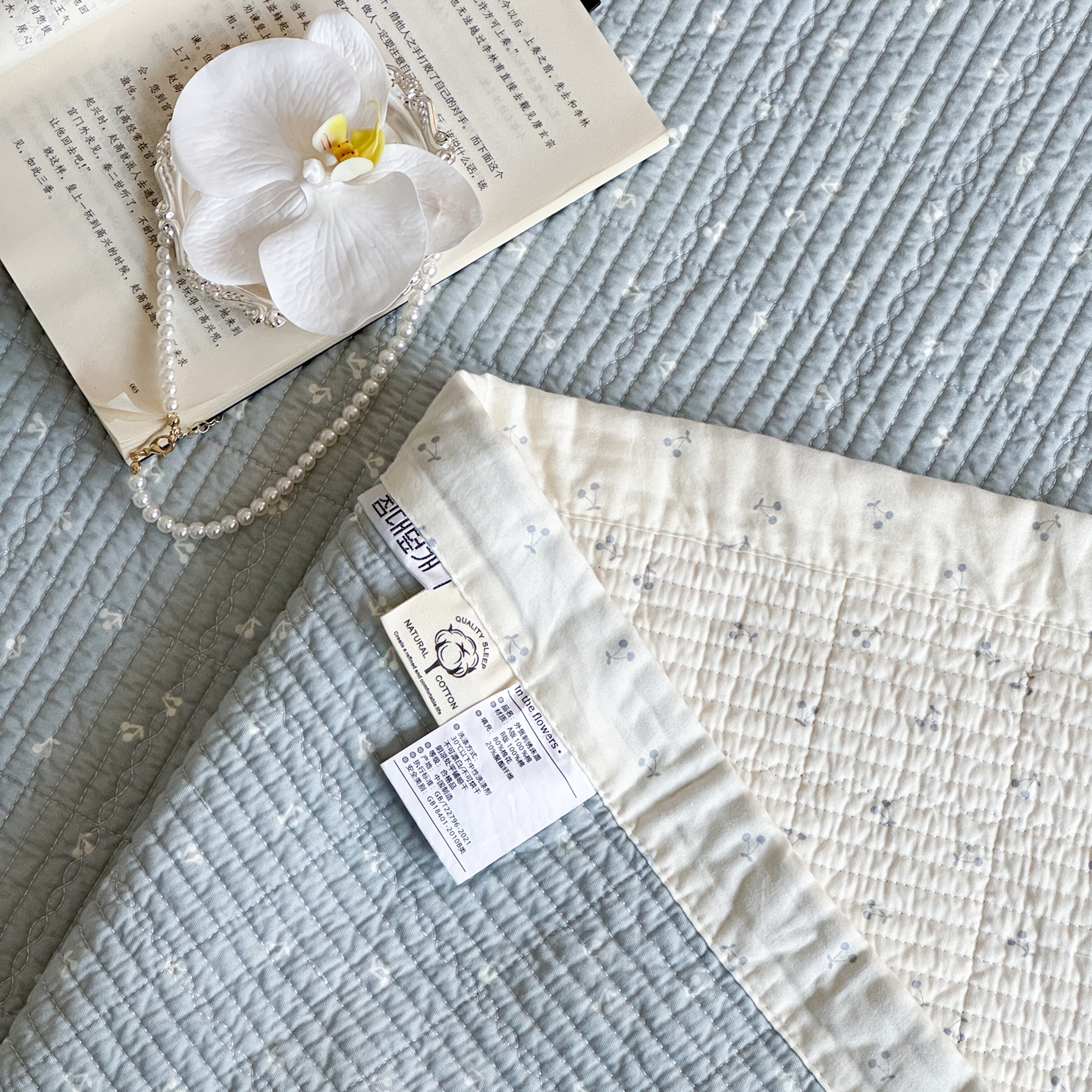 商品名称:床盖工厂店 2026春夏新款双面100%全棉填充80棉花床盖三件套 樱语兰
