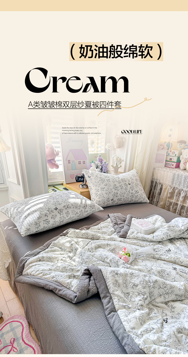 当前位置: 91家纺网 > 商品网购 > 床品套件 > 四件套 > 夏被四件套 > 卡斯诺家纺馆 2026新款皱皱棉双层纱夏被四件套下载文件包含买家秀 雨蝶