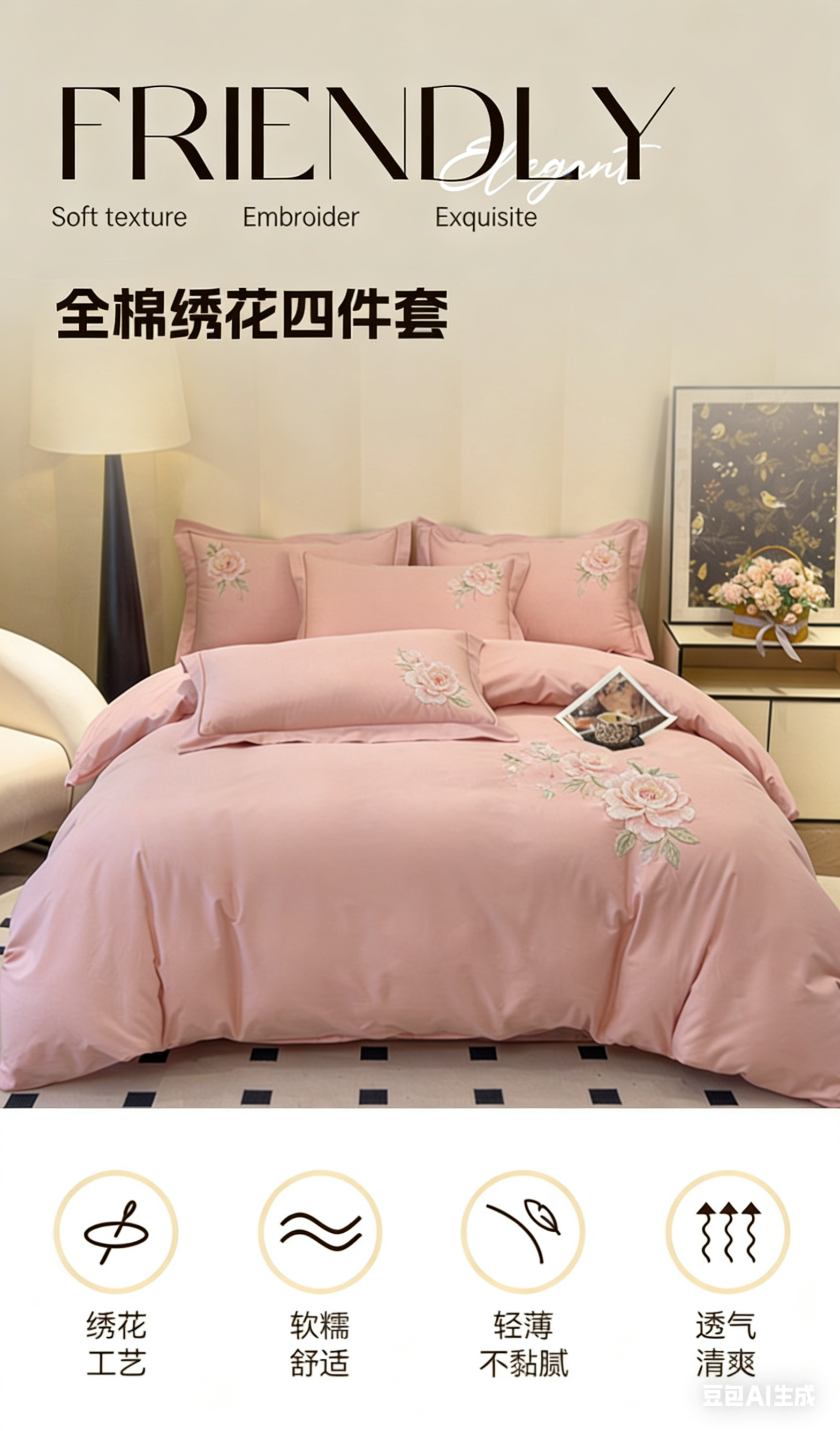 (总)U品汇 2026全棉纯棉刺绣花四件套40支长绒棉100%棉礼盒包装