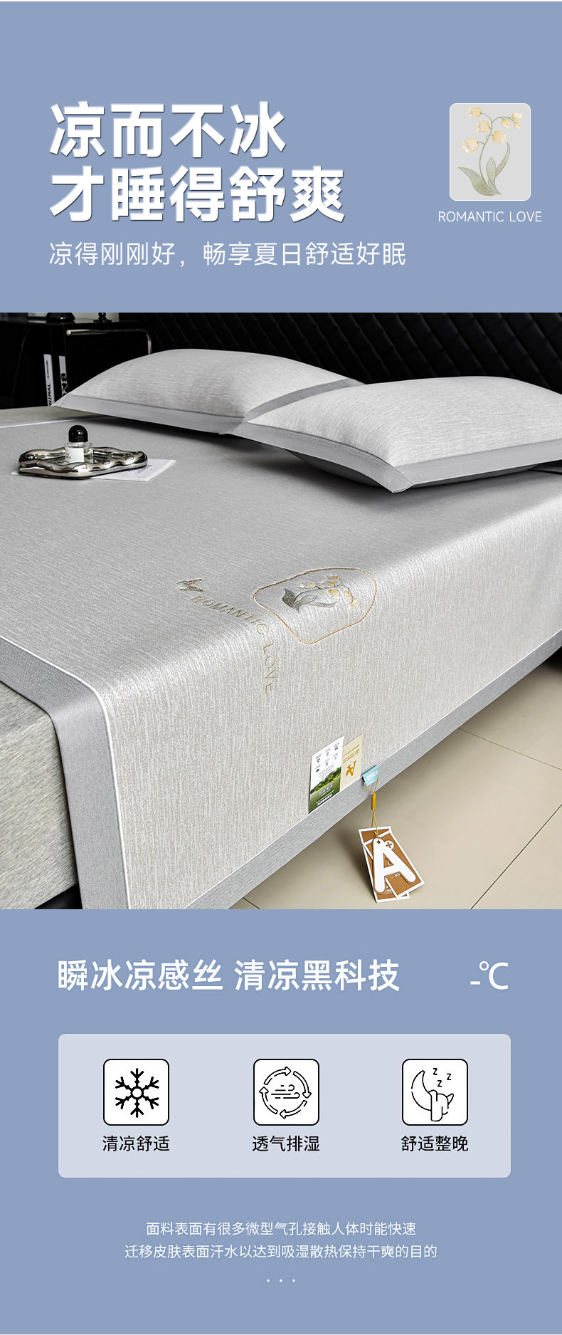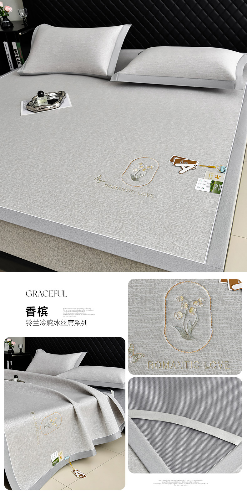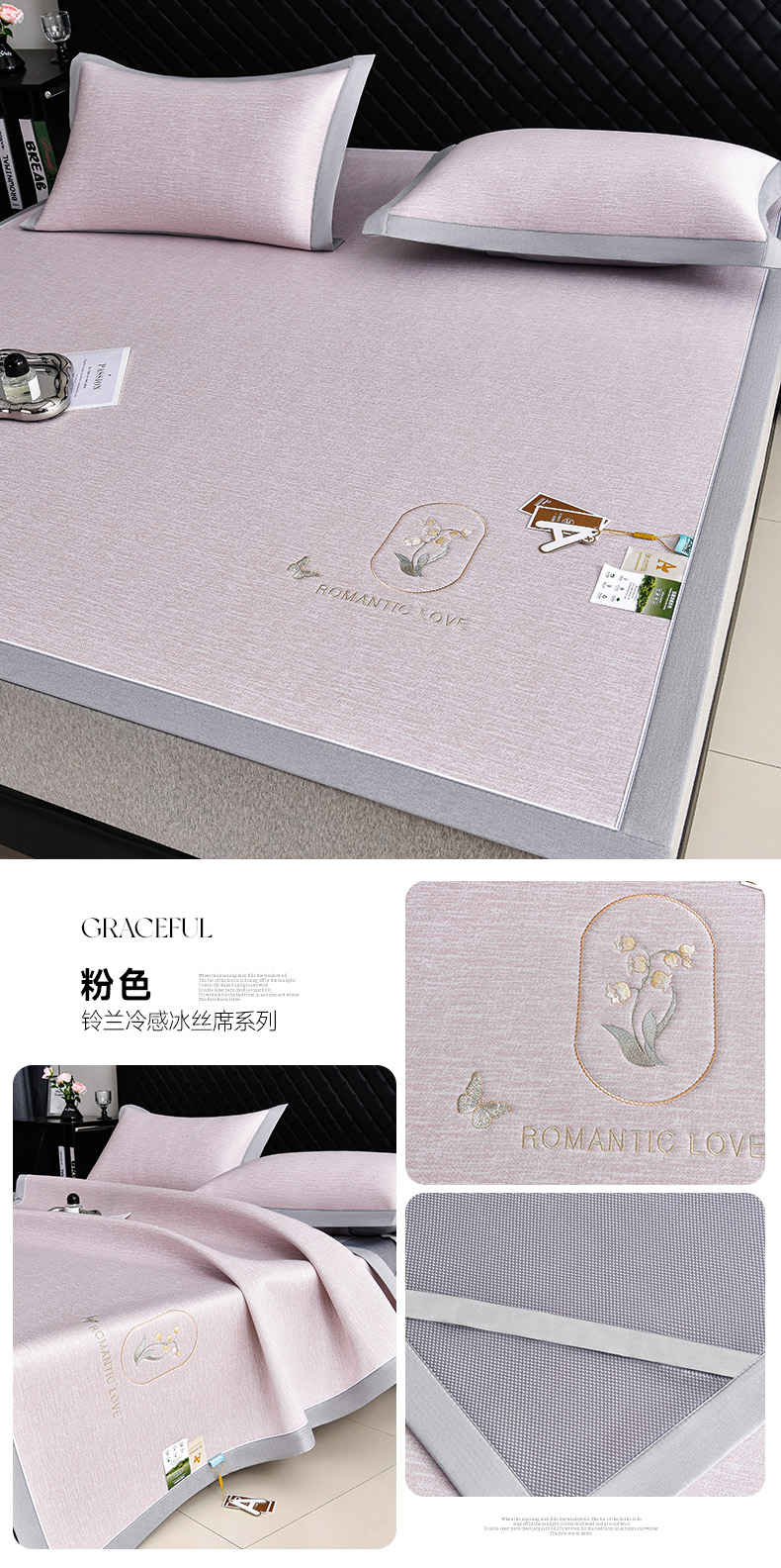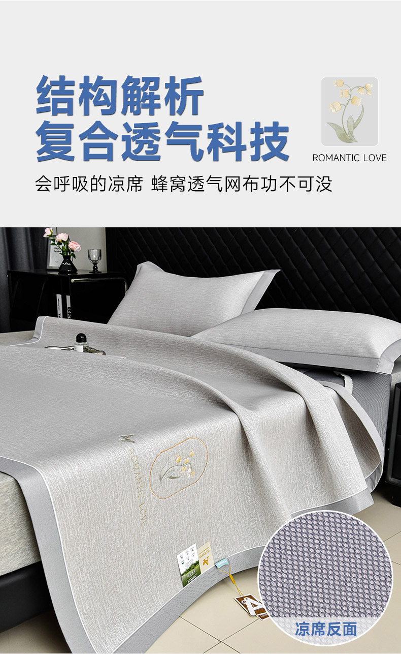 (总)小牛席业 2026新款ALL cool 全凉感绣花凉感冰丝席凉席席子,ALL cool-粉色,ALL cool-灰色,ALL cool-蓝色,ALL cool-香槟