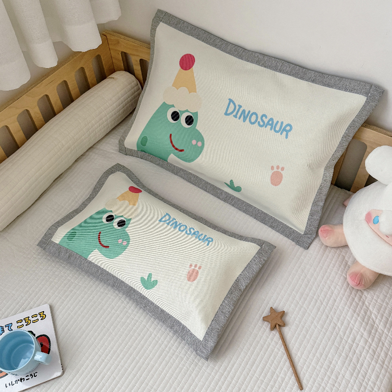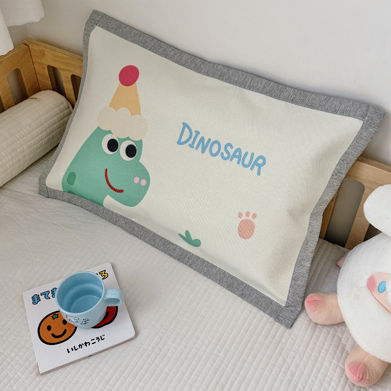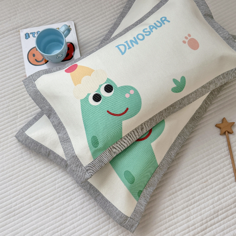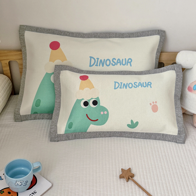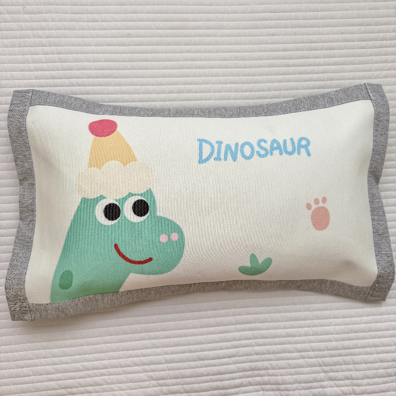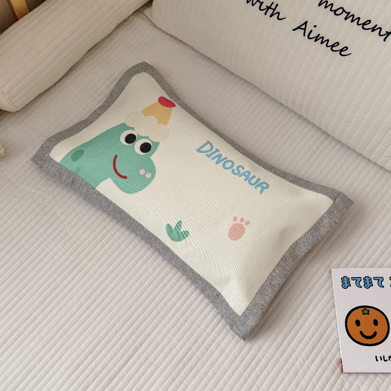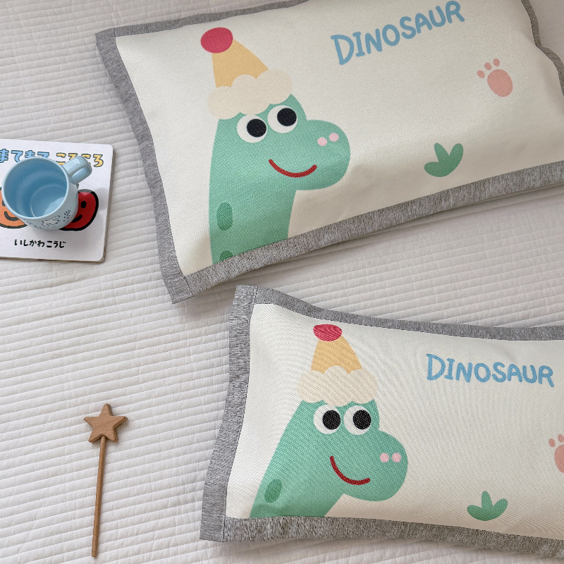 萌宝家纺 2026新款900D加密儿童冰丝枕套夏季A类冰藤枕头 可爱恐龙-米白