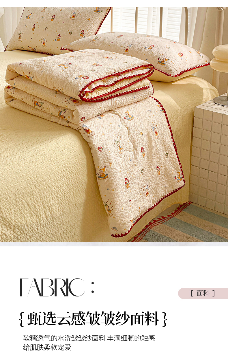 (总)蓝极人 2026新款泡芙贝壳边夏被四件套,XB星星人,XB草莓,XB好心情,XB蘑菇兔,XB苹果狗,XB曲奇猫,XB生日狗,XB施华洛黄,XB耶耶狗,组合图仅供展示-不可下单