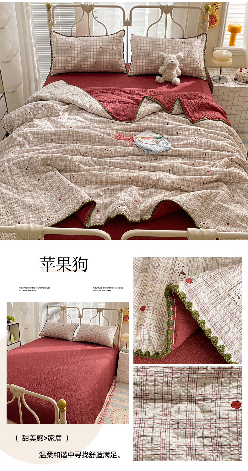 蓝极人 2026新款泡芙贝壳边夏被四件套 XB苹果狗