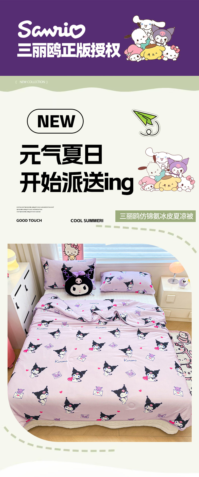 暮思家居 2026新款正版授权三丽鸥A类仿锦氨小冰皮夏被夏凉被空调被 小冰皮-巴库库洛米