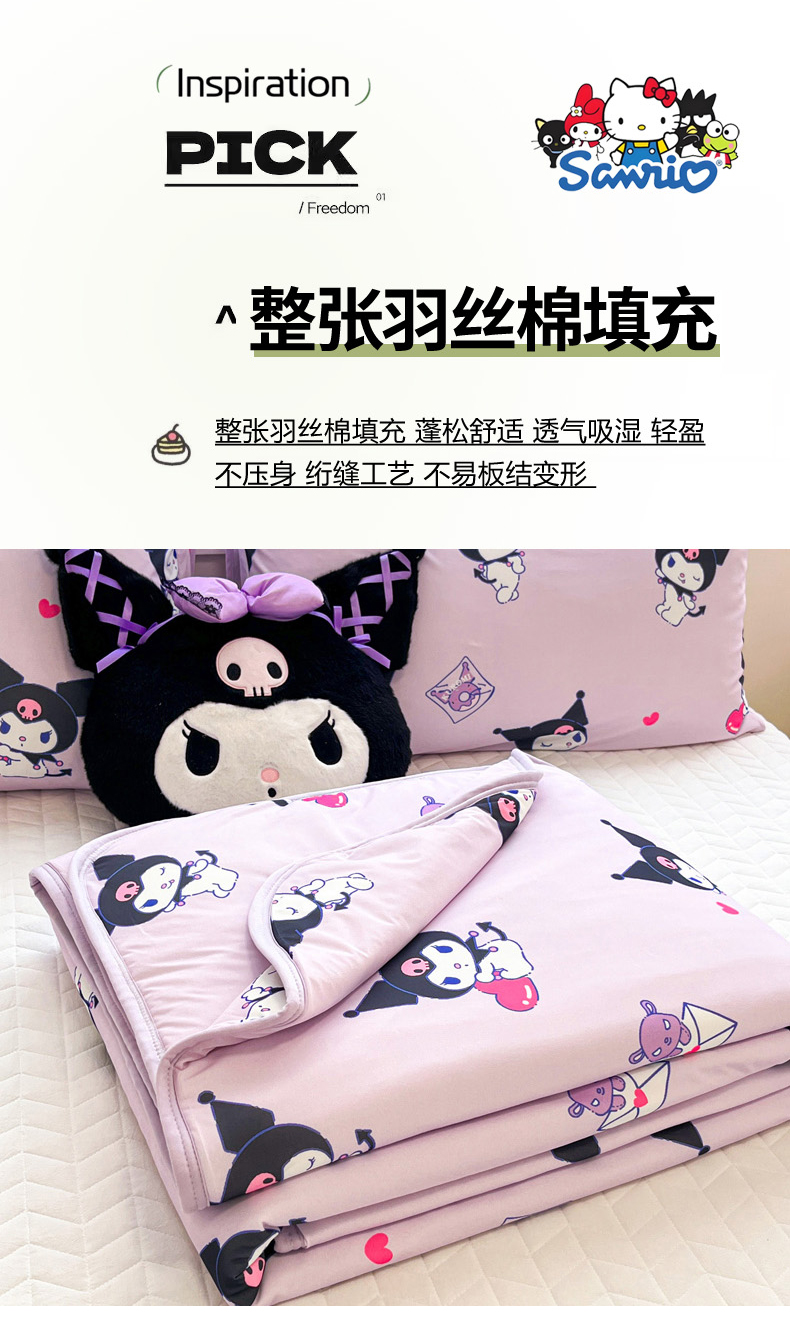 商品名称:暮思家居 2026新款正版授权三丽鸥A类仿锦氨小冰皮夏被夏凉被空调被 小冰皮-巴库库洛米