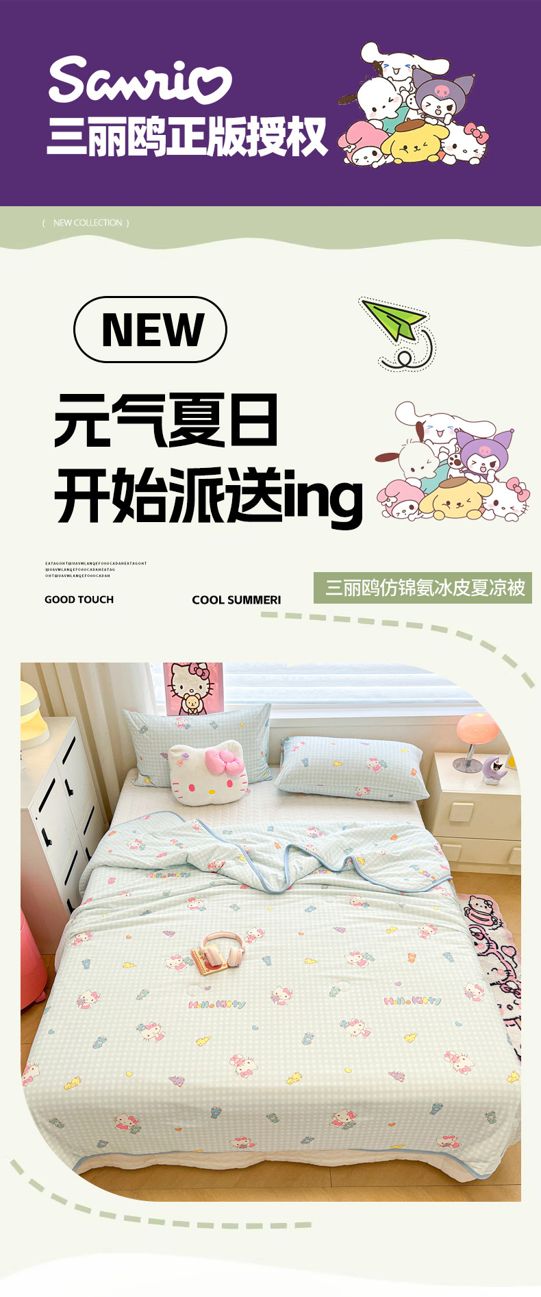 (总)暮思家居 2026新款正版授权三丽鸥A类仿锦氨小冰皮夏被夏凉被空调被,小冰皮-乖巧KT,小冰皮-KT美乐蒂,小冰皮-巴库库洛米,小冰皮-点点玉桂狗,小冰皮-公主KT,小冰皮-蝴蝶结美乐蒂,小冰皮-花花美乐蒂,小冰皮-可爱KT,小冰皮-泡泡布丁狗,小冰皮-甜品玉桂狗,小冰皮-甜筒KT-白,小冰皮-甜筒KT-粉,小冰皮-小熊KT,小冰皮-幸福KT