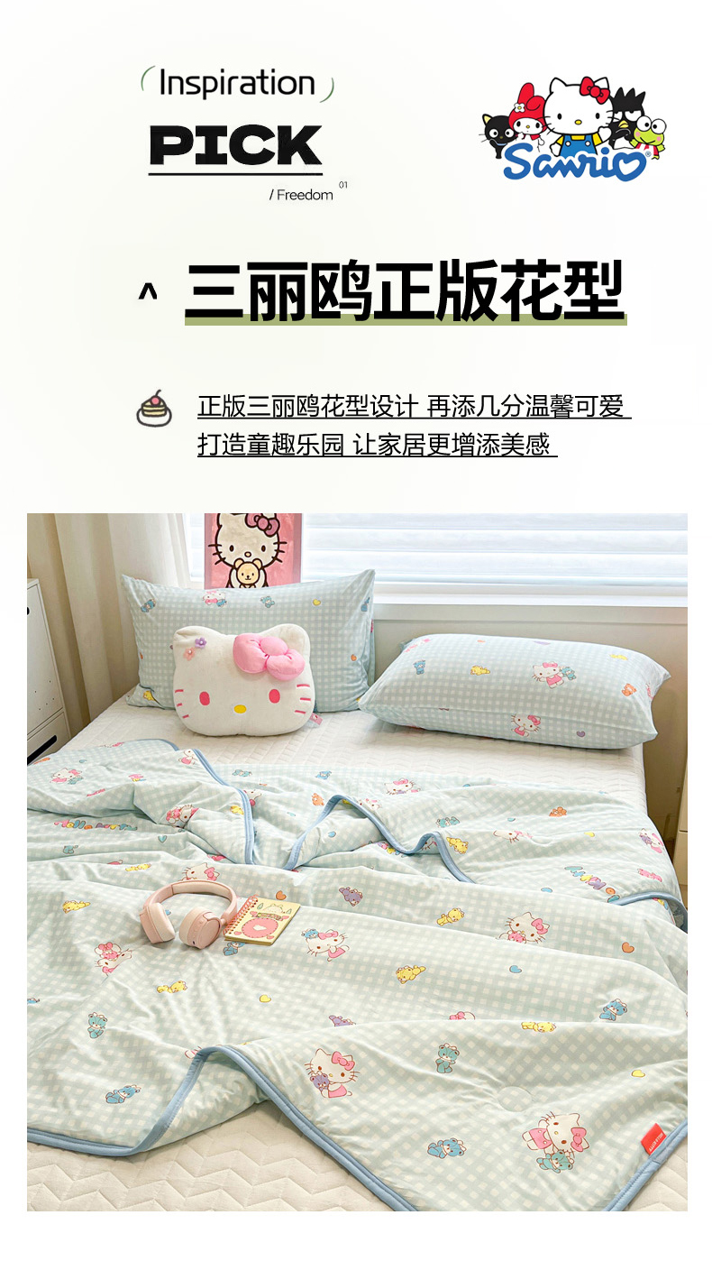 (总)暮思家居 2026新款正版授权A类大版数码印花三丽鸥可组合仿锦氨夏被夏凉被空调被,草莓KT,甜筒KT,豹纹KT猫,草莓美乐蒂,蛋糕美乐蒂,格子KT,公主美乐蒂,蝴蝶结KT,花园美乐蒂,开心玉桂狗,快乐玉桂狗,美美KT,梦幻KT,梦想库洛米,奶油KT,甜蜜库洛米,条纹美乐蒂,晚安玉桂狗,相框美乐蒂,香水KT,小兔美乐蒂,小熊玉桂狗,幸福KT,幸福大耳狗,炫彩库洛米,云朵玉桂狗