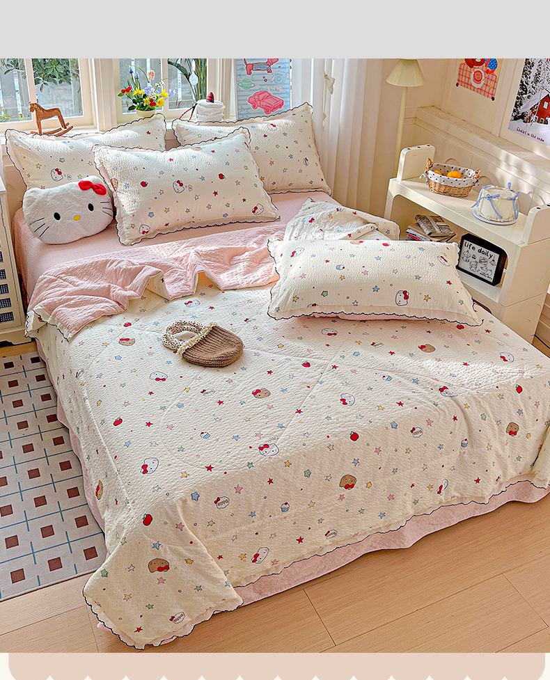 梵希雅 2026新款泡芙纱床盖夏被四件套 小猫拉车,小猫拉车