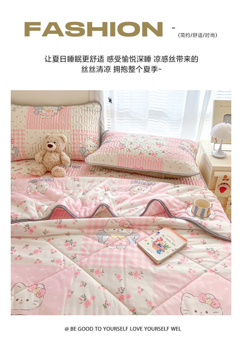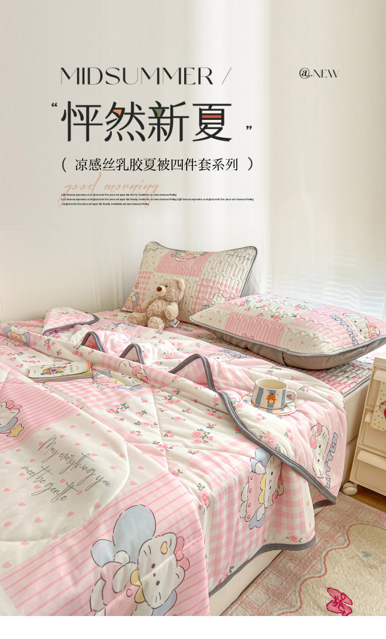 当前位置: 91家纺网 > 商品网购 > 床品套件 > 四件套 > 夏被四件套 > 柒月家居 2026新款凉感丝小清新乳胶凉席夏被四件套系列 粉格凯蒂