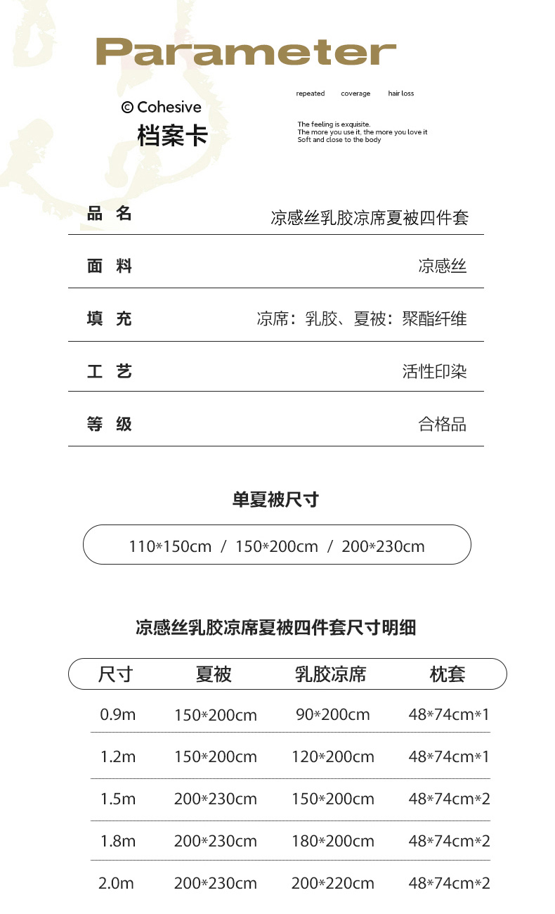 1.8m凉席2.0m夏被四件套 | ¥90.00 |