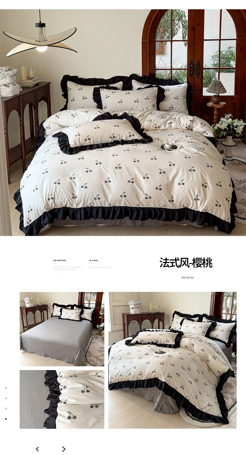 (总)晚爱家纺(原晚安家居) 2026春夏新款古法水洗棉复古法式花边四件套少女公主风,春日密语,复古小花,海燕奶芙,浆果日记,焦糖豹纹,玫瑰花语,密语花田,粉色蝴蝶结,奶白蝴蝶结,童趣木马,雾蓝花野,樱桃日记,紫色花野,紫雾小兔