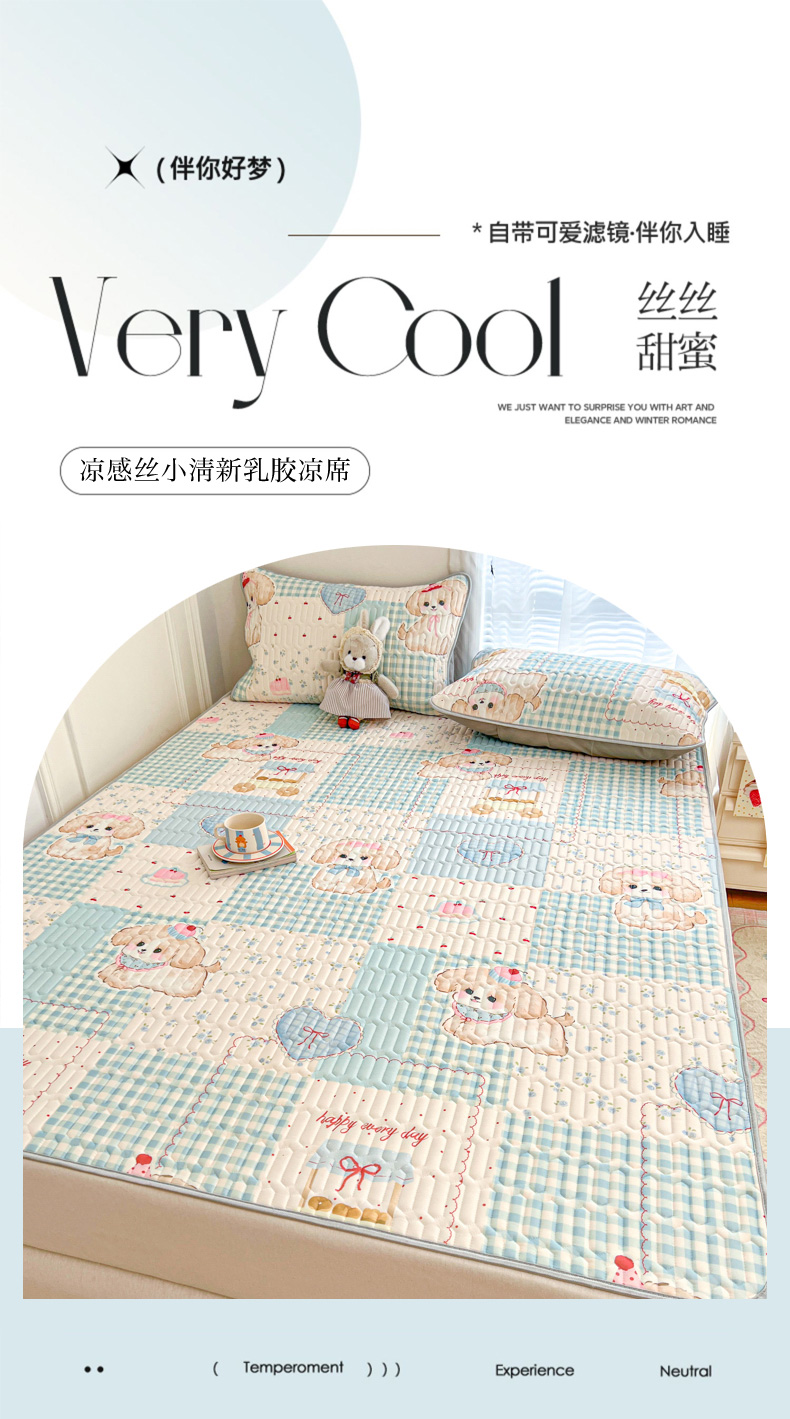 (总)柒月家居 2026新款凉感丝小清新乳胶凉席,蓝格甜猫,爱心小熊,豹纹精灵,粉格凯蒂,格调,花季,蓝块汪仔,奶盖猫咪,碎花派对,桃桃奶猫,星梦小熊,星星月亮,字母小熊