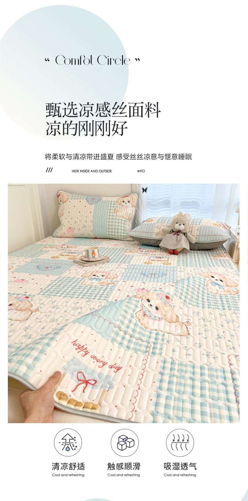 (总)柒月家居 2025新款萌宠系列凉席夏被夏凉被空调被套件,西高地,小企鹅,KT蛋糕,腊肠狗,小粉兔,小熊猫,小熊熊,组合图仅做展示