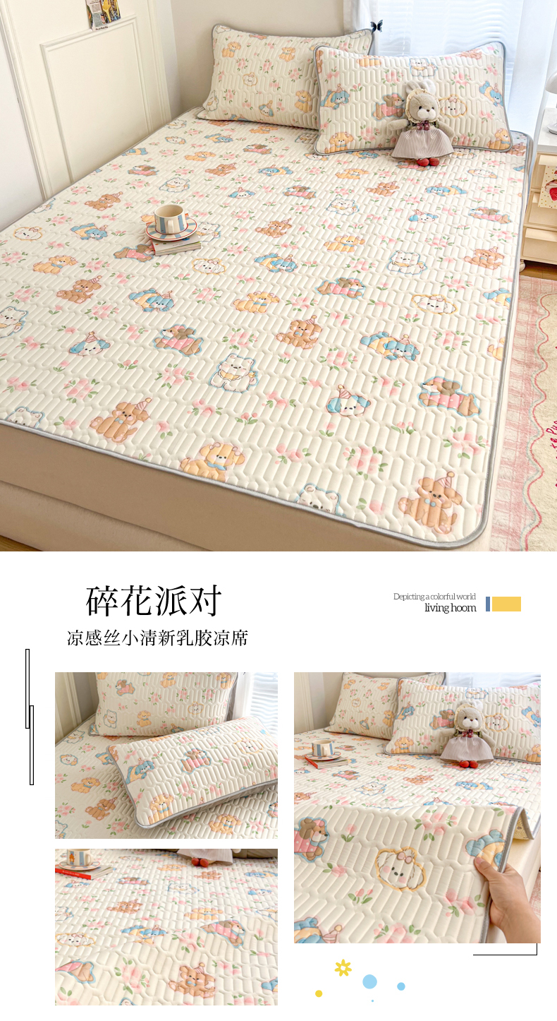 (总)柒月家居 2026新款小清新乳胶凉席三件套,粉格凯蒂,爱心小熊,爱心熊猫,豹纹精灵,波点萌宠,彩色木马,格调,花季,灰格小熊,简约甜喵,蓝格甜猫,蓝块汪仔,奶盖猫咪,碎花派对,桃桃奶猫,甜酷星兔,星帽小熊,星星月亮,字母小熊