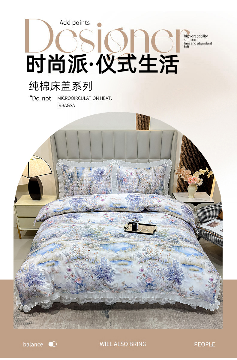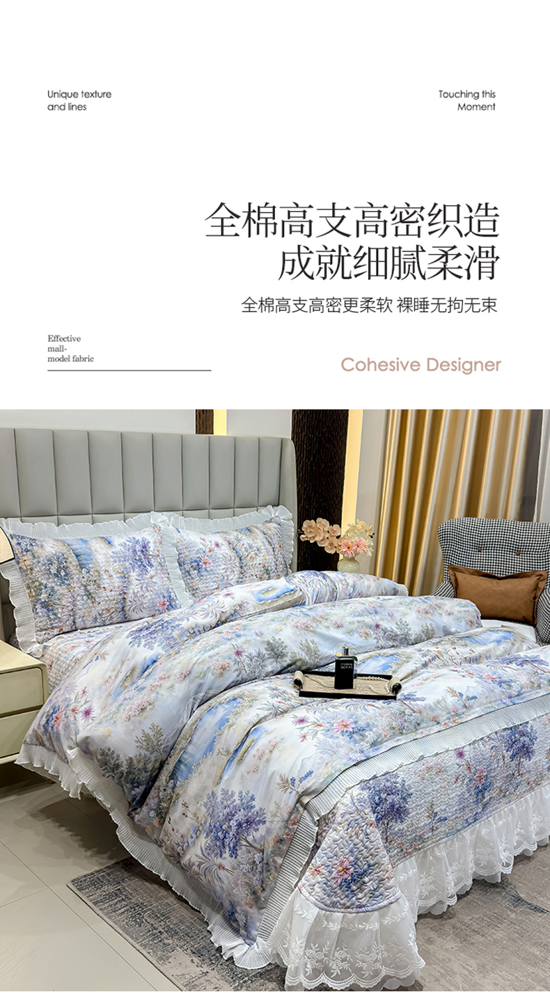(总)冬然家纺 2025新款纯棉数码印花工艺款单床盖,淡雅清香,国色天香,花海之恋,花影,梦幻花镜,墨雅清风,田园花梦,玉兰花,珍爱花语