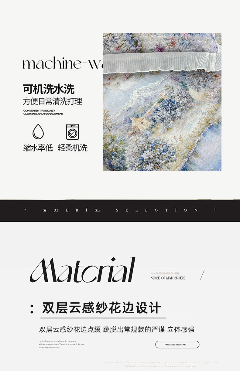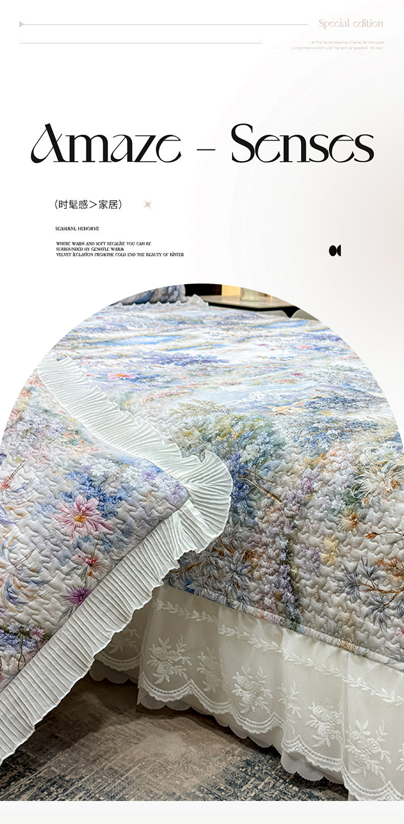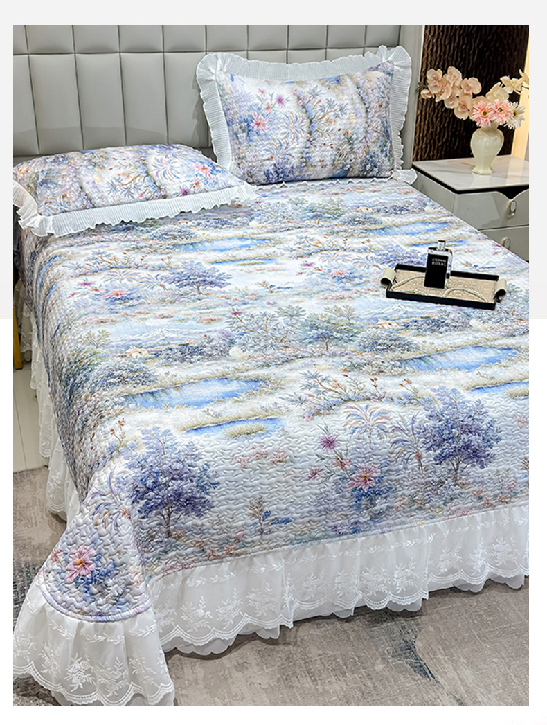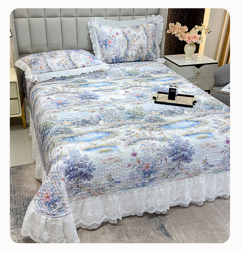 • 91家纺网 家纺一手货源 找家纺 (总)冬然家纺 2025新款高克重牛奶绒蕾丝花边床盖系列,水墨茶花,朵朵花香,肌理纹-灰,肌理纹-咖,经典条纹,卡皮巴拉,可可西里,楼兰花海,奶油布丁,幸运点点
