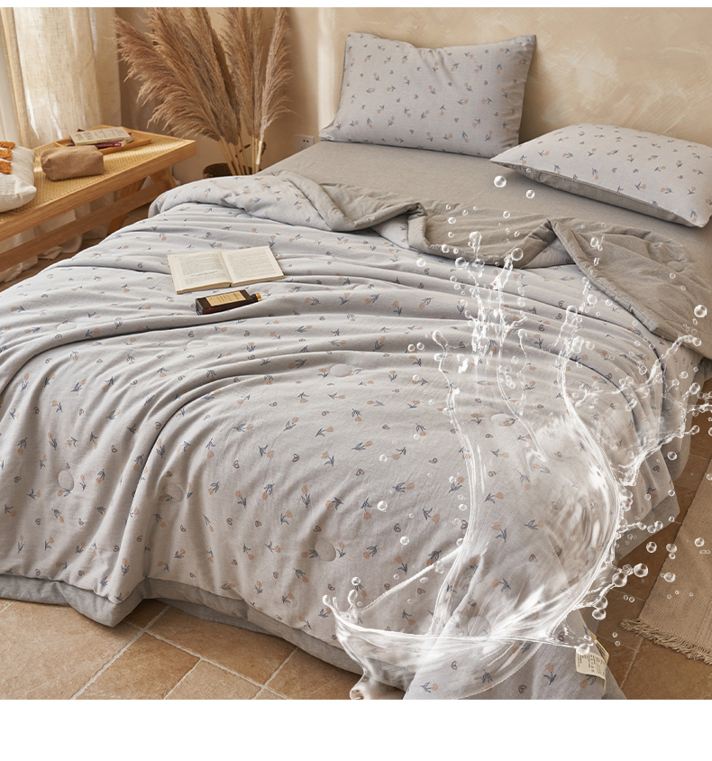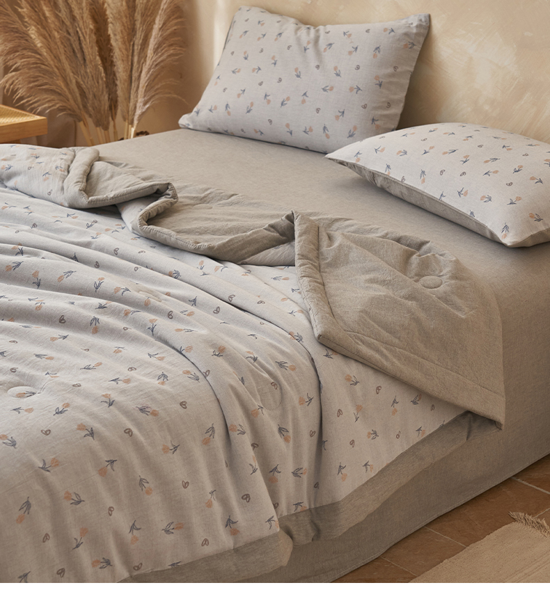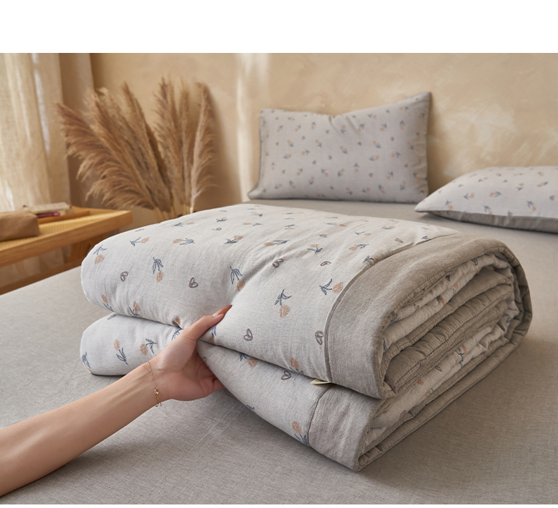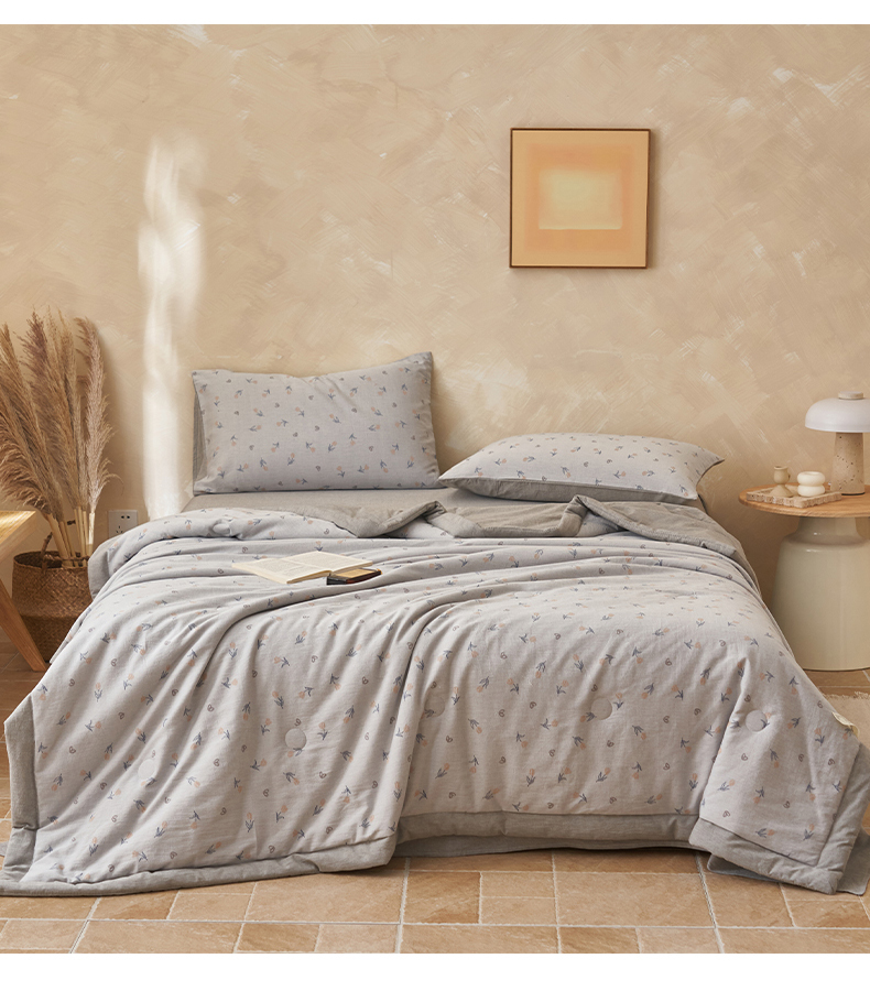 • 91家纺网 家纺一手货源 找家纺 简如 2026新款全棉60提花里外纯棉棉花夏凉被四件套 芬芳-蓝灰