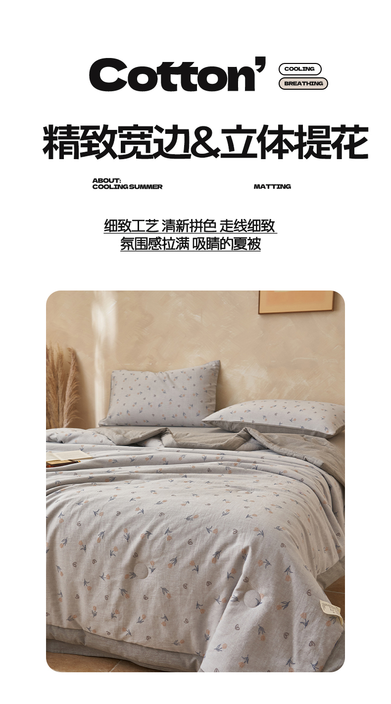 当前位置: 91家纺网 > 商品网购 > 被子 > 夏被 > 简如 2026新款全棉60提花里外纯棉棉花夏凉被四件套 芬芳-蓝灰