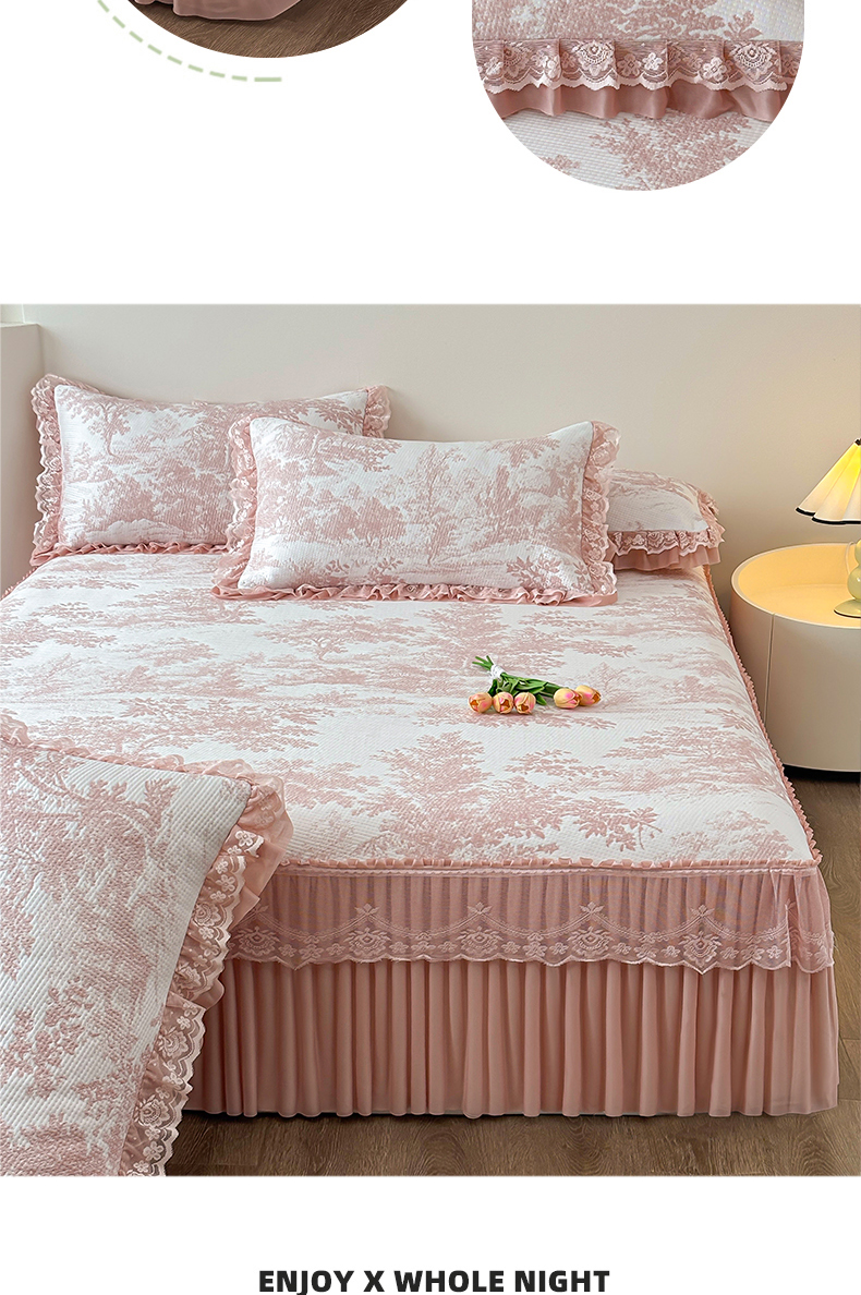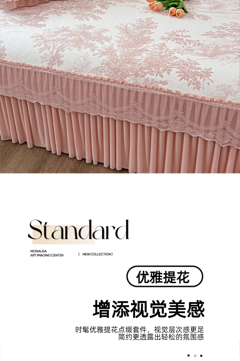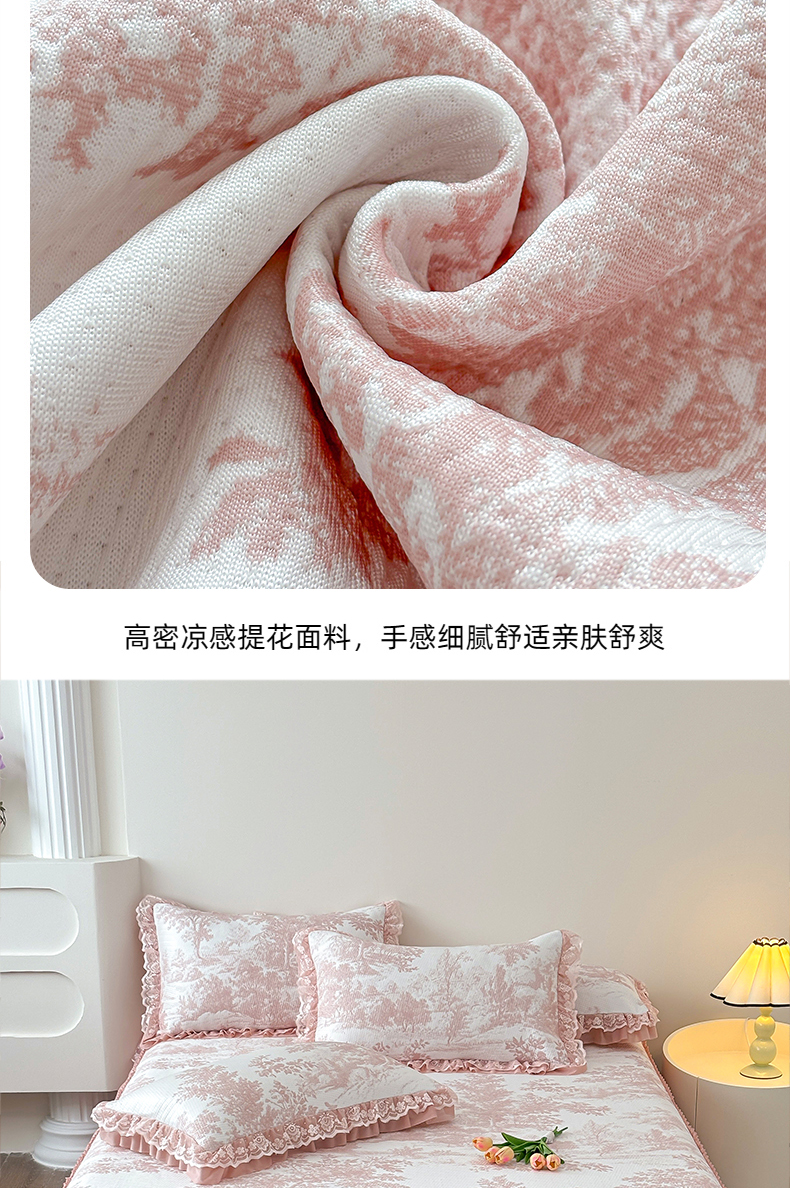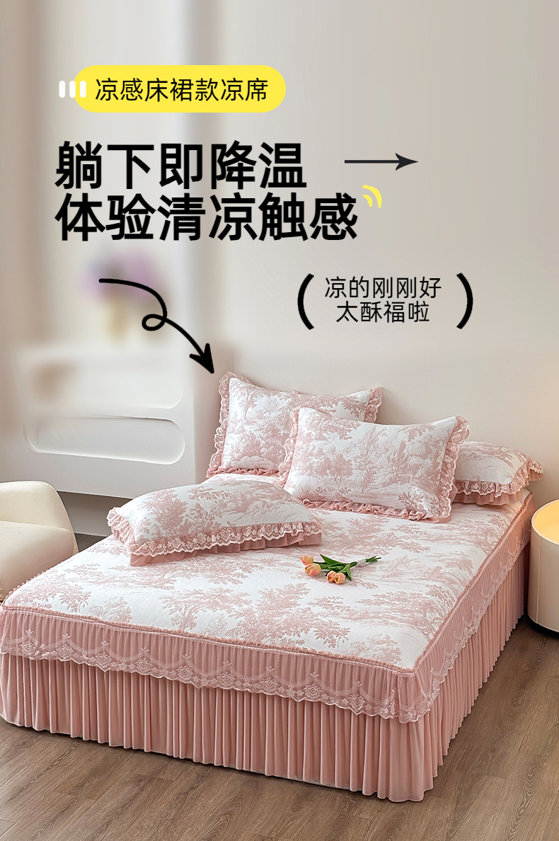 商品名称:金艾草 2026春夏新款PE凉感床裙款凉席席子空调软席 清新-粉色