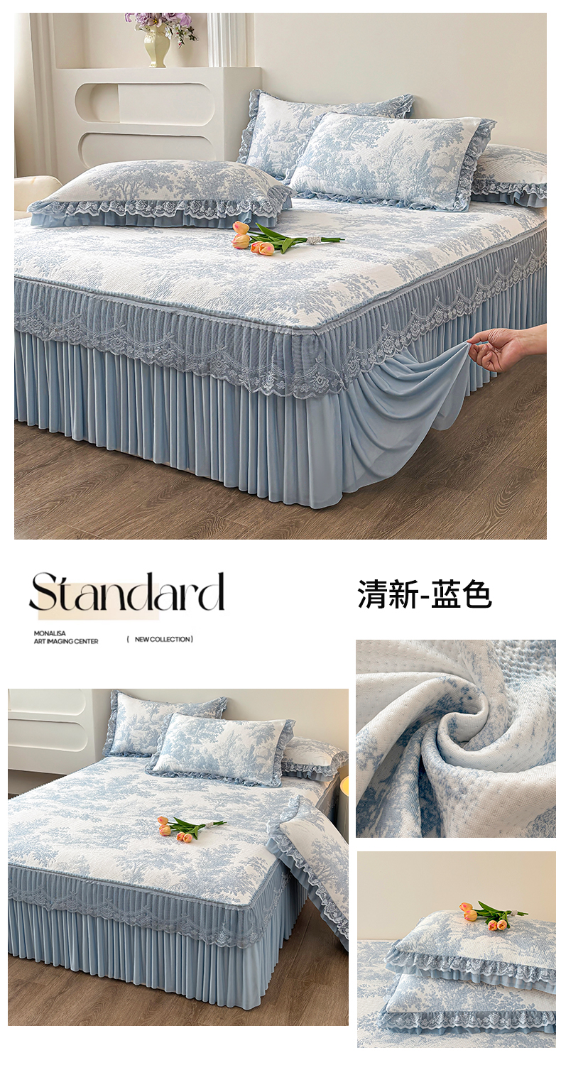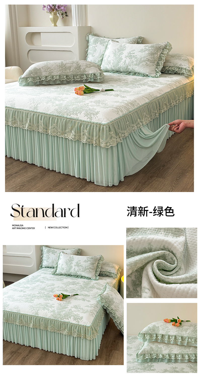 (总)金艾草 2024新款水洗全棉浮雕提花床盖四件套,圣罗纳-灰,片叶情-豆绿,罗曼-浅绿,蜀锦-茉莉白,轻颜-珊瑚粉