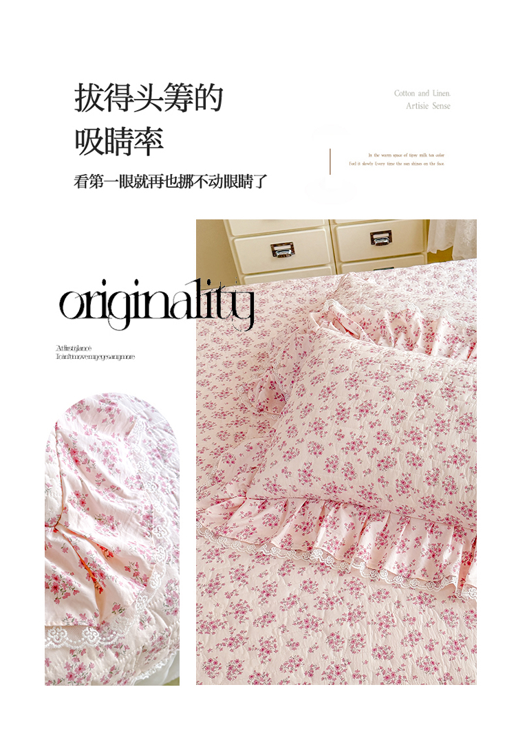 (总)苏米娜家纺2026春夏新款活性印花ins风小碎花软糯水洗棉床盖款四件套全棉纯棉花边款被套,春田绿 ,紫韵,兰黛 , 奶酪芝士 ,莫奈-粉