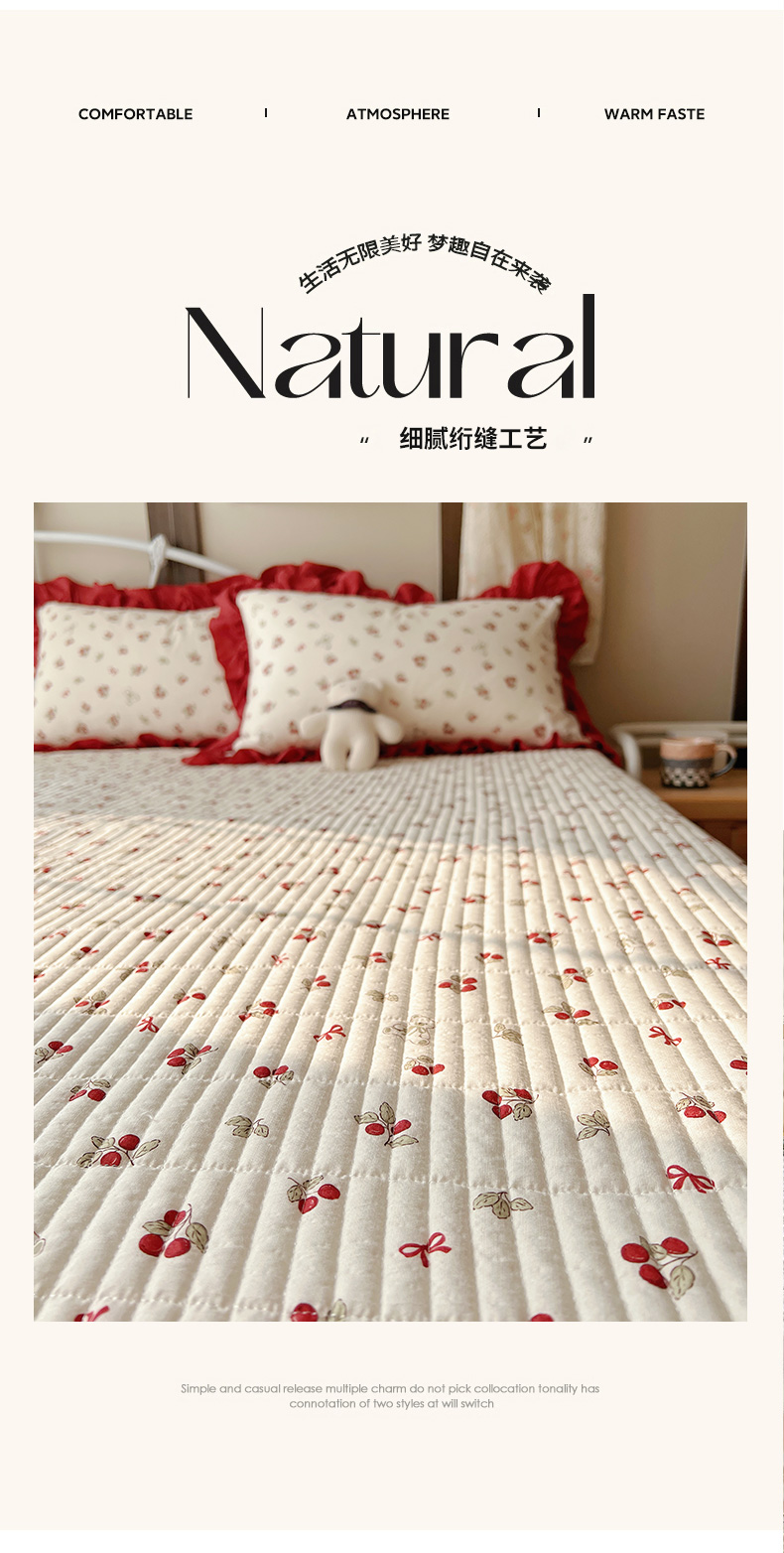 商品名称:繁花家居 2026新款木棉泡芙感超糯叽叽花边床盖夏被四件套 林间红果