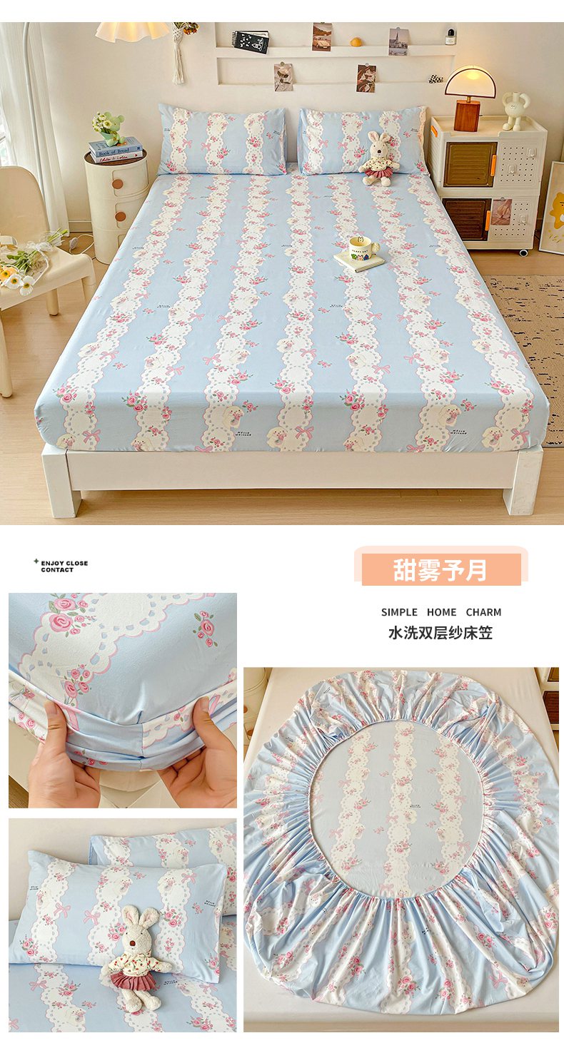 纽缦家纺 2026新款A类水洗棉学生床笠系列 甜雾予月