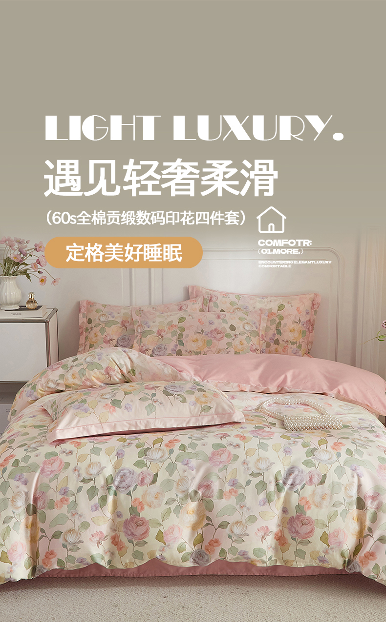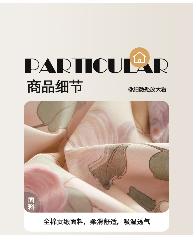 当前位置: 91家纺网 > 商品网购 > 床品套件 > 四件套 > 全棉普通四件套 > 锦彩家居 2026新款全棉纯棉印花60支贡缎新疆长绒棉四件套-山月记系列 云舒
