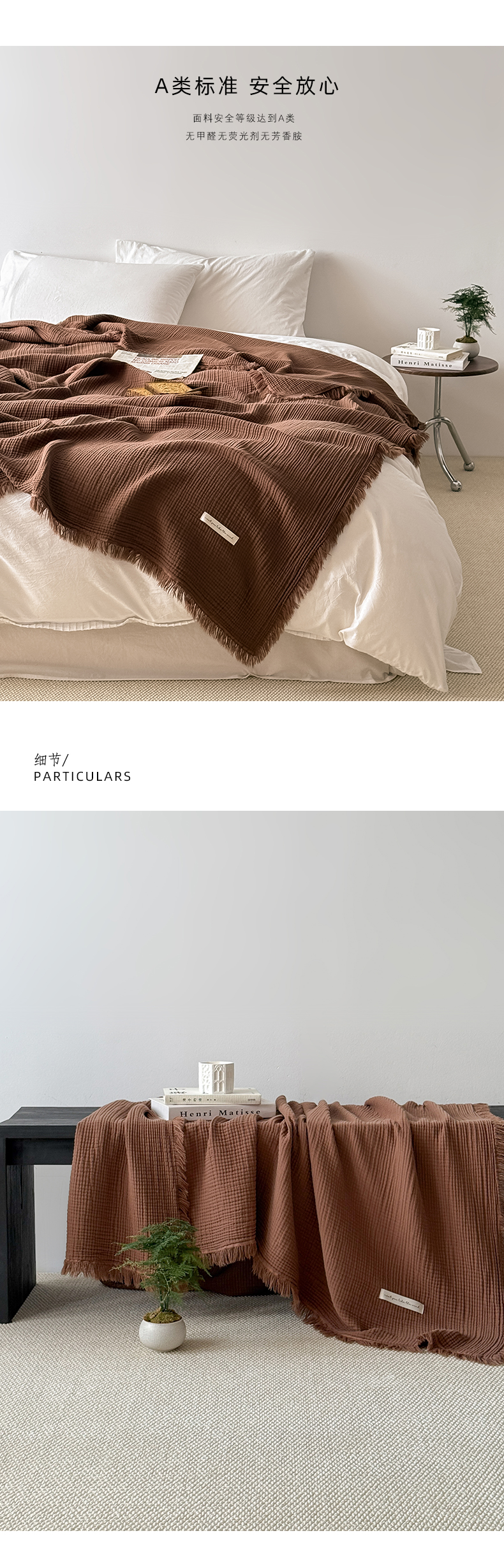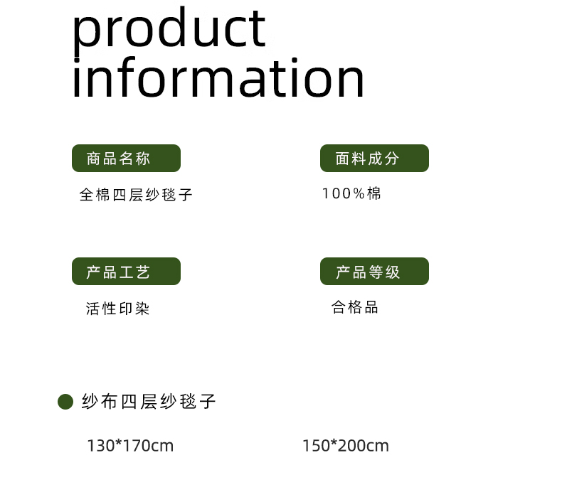 商品名称:Mr.pig猪先生水洗棉 2026新款全棉四层纱毯子(展示价格为控价,实际价格请联系客服) 山核桃